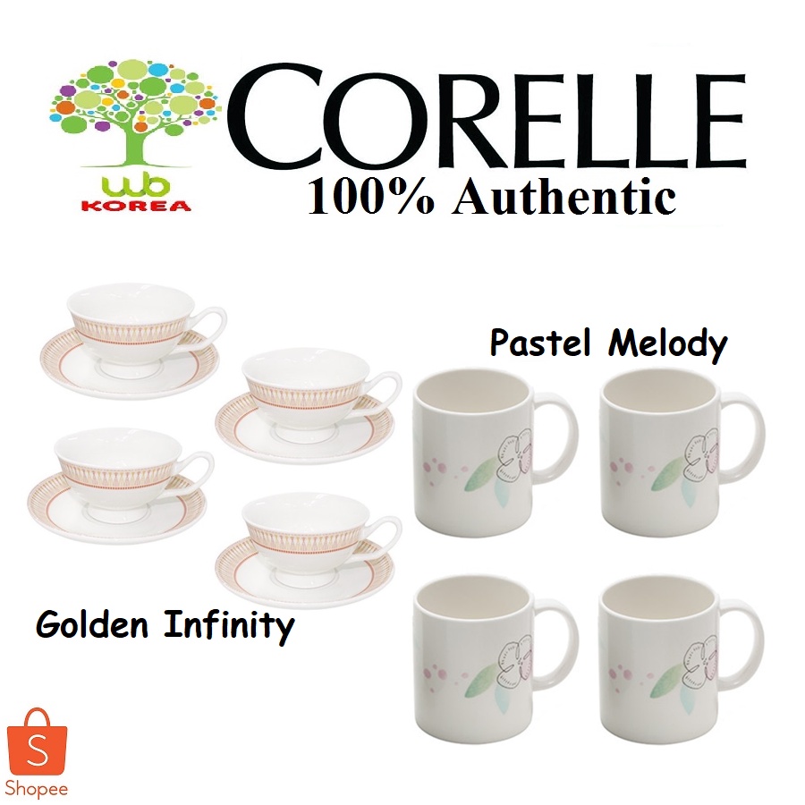 CORELLE Coordinate Mug 350ml 4 Piece Set with Coordinate Tea Cup & Saucer 4 Piece Set