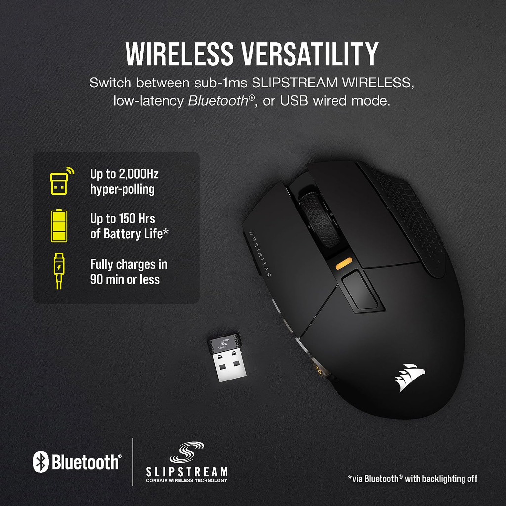CORSAIR SCIMITAR ELITE RGB WIRELESS MMO Gaming Mouse - 26,000 DPI -16 Programmable Buttons