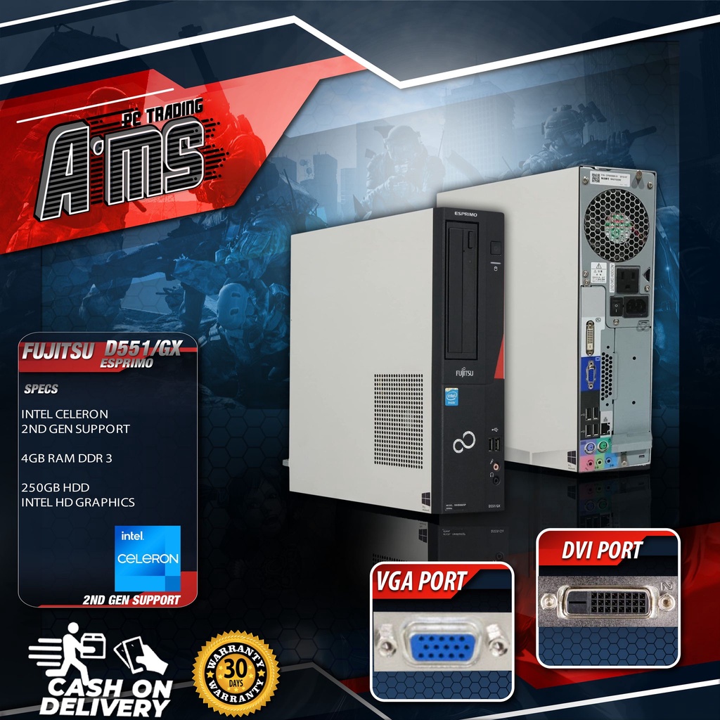 CPU FUJITSU D551/GX ESPRIMO INTEL CELERON 2ND GEN SUPPORT 4GB RAM DDR3 250GB HDD