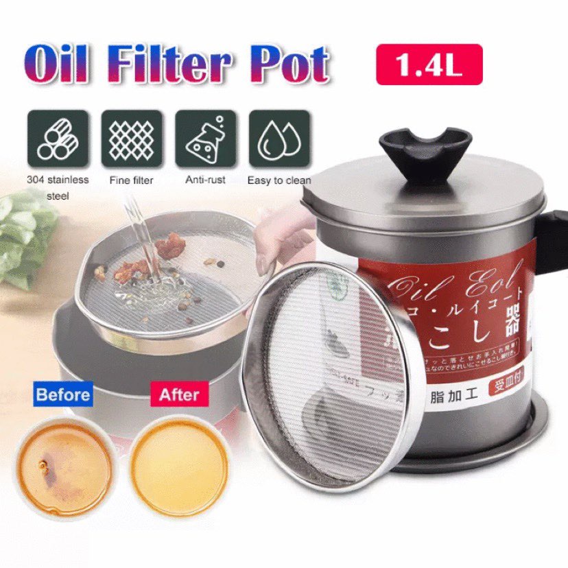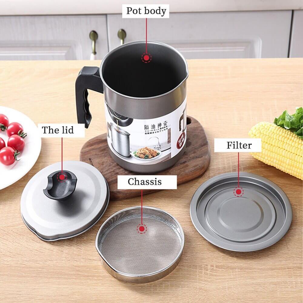 CQW 1.4L Stainless Steel Oil Strainer Pot Container Jug Storage Can With Filter Cooking Oil Pot