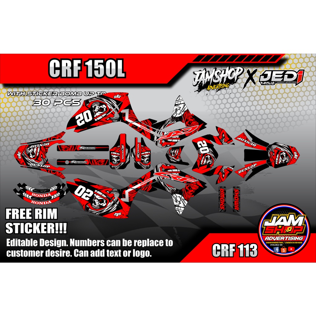 CRF 150L Honda Full Set Decals w/ FREE RIM STICKER Batch 2