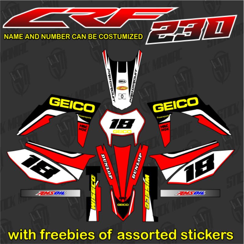 CRF 230 decals sticker, Laminated