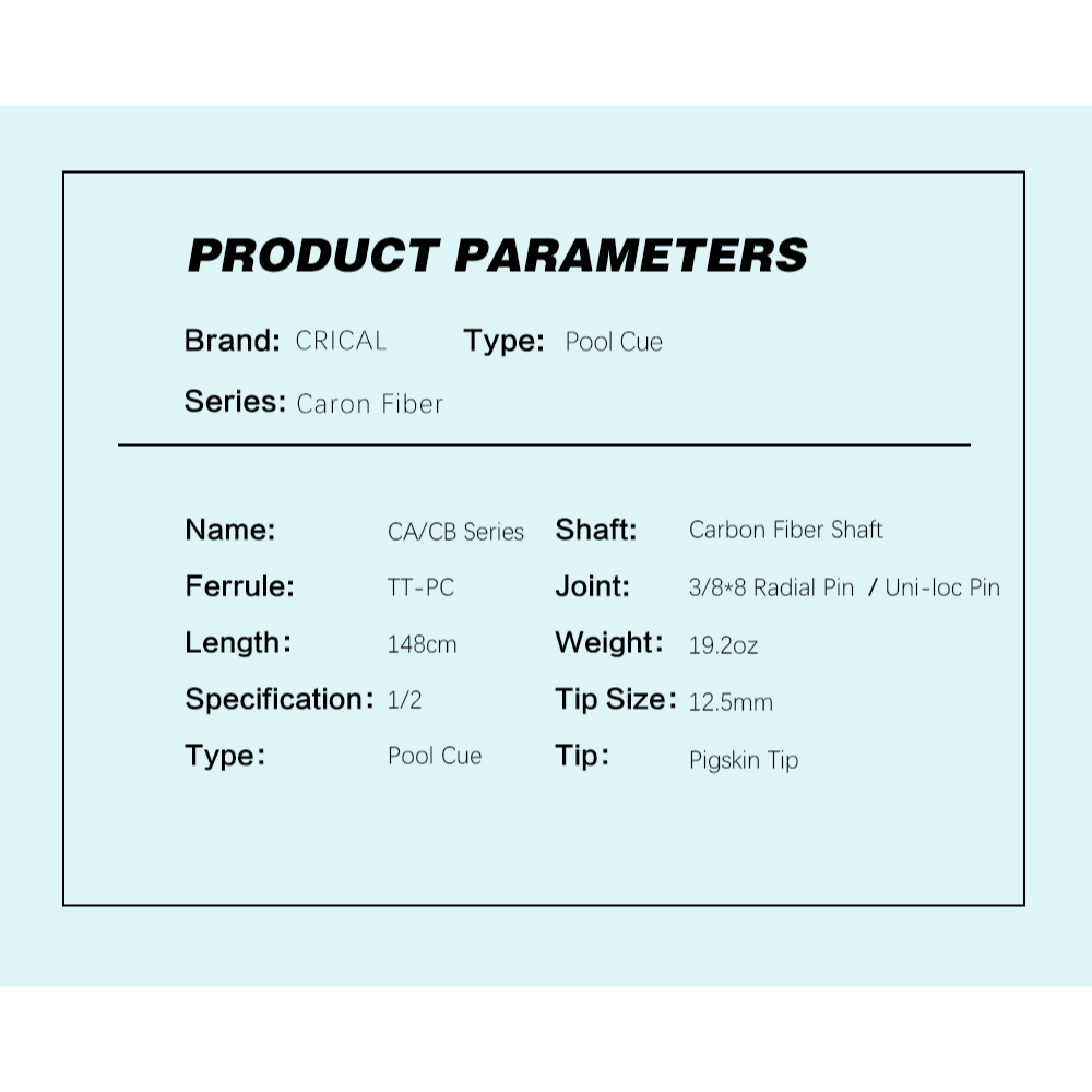 CRICAL Brave Carbon Fiber Pool Cue 11.5/12.5mm Tip Uniloc 3/8*8 Radial Joint Carbon Cue Fiber Billiard Stick Free Gift