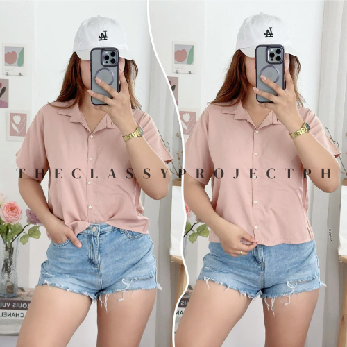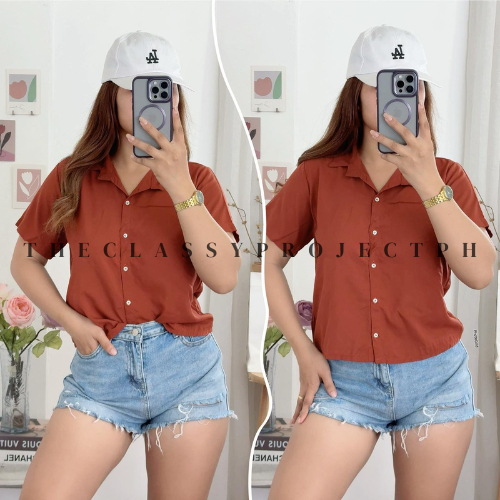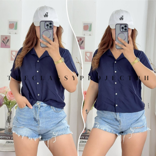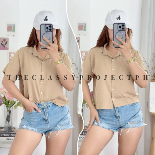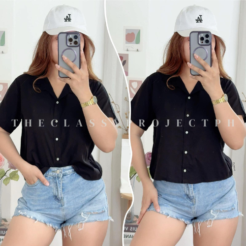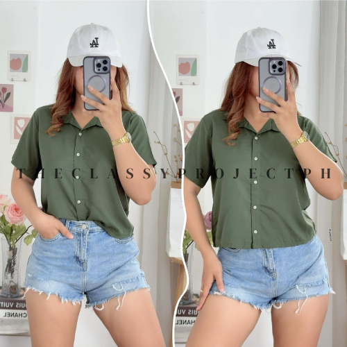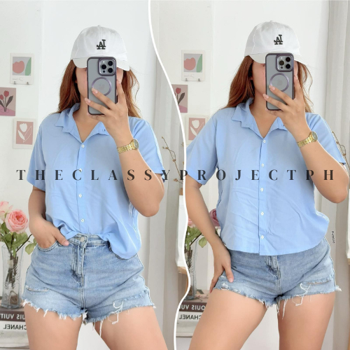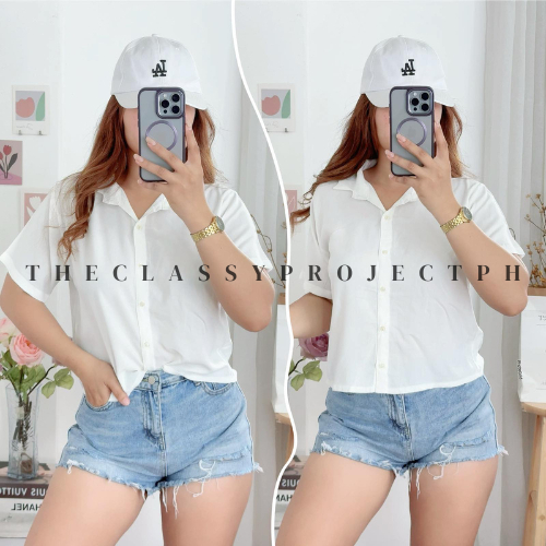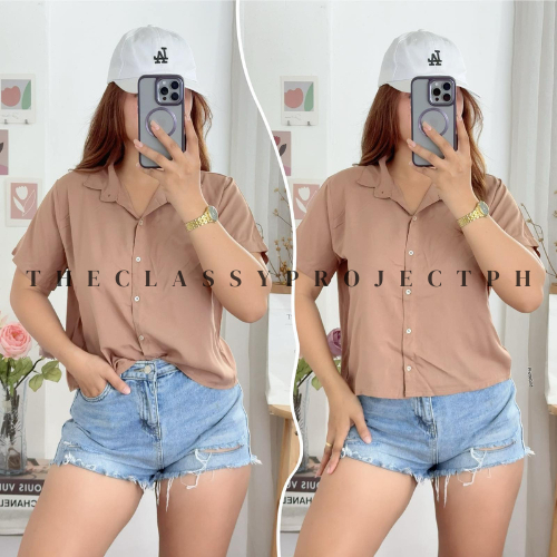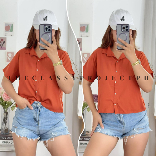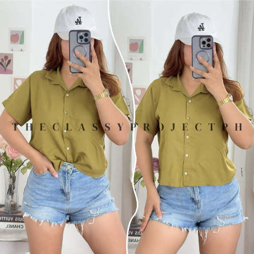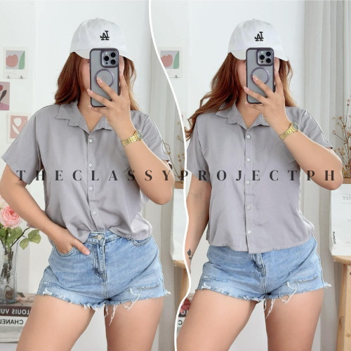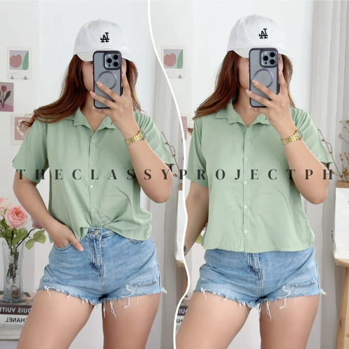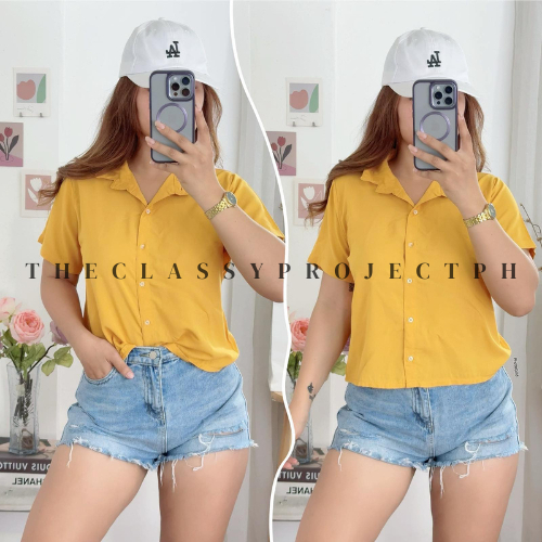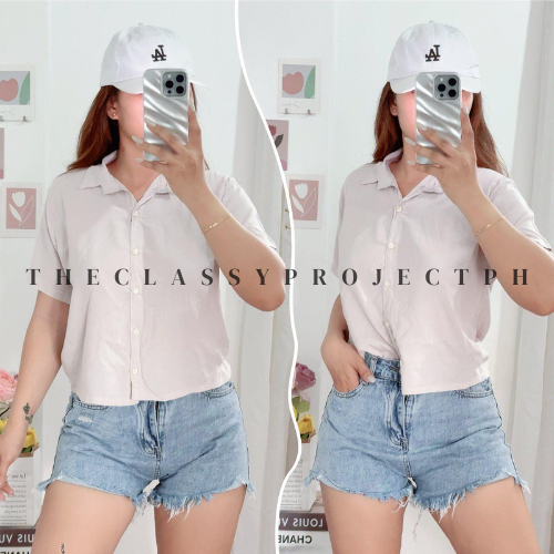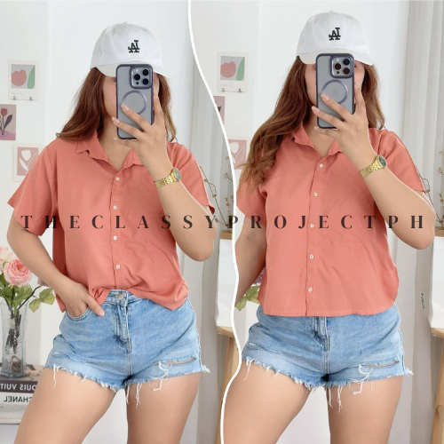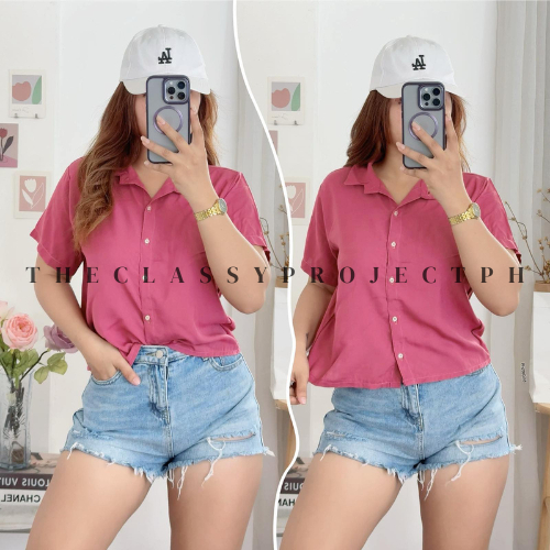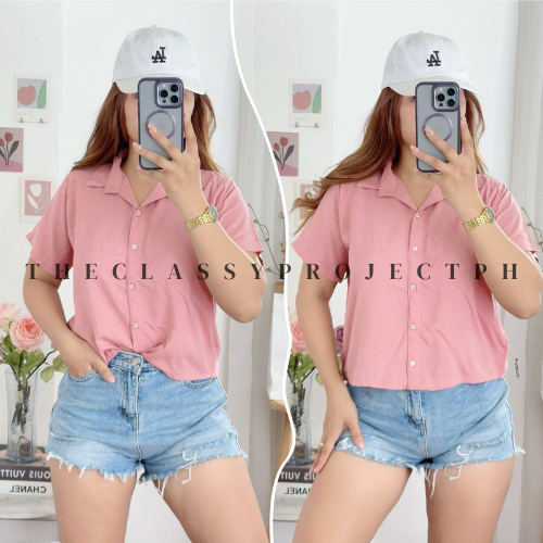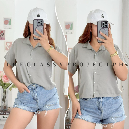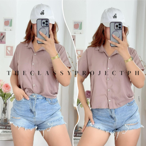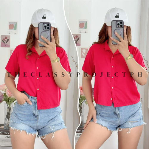 CROPTOP POLO / BUTTON DOWN POLO / FOR WOMEN / CHALLIS FABRIC POLO