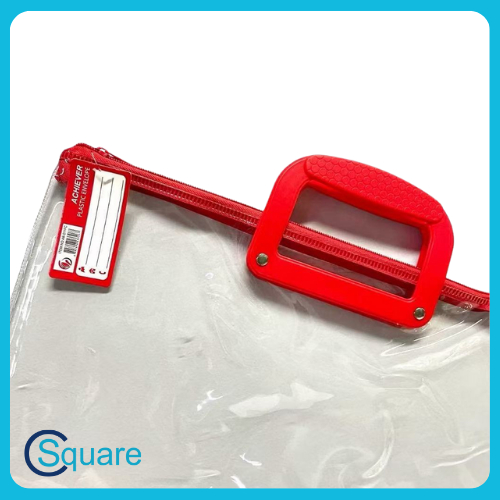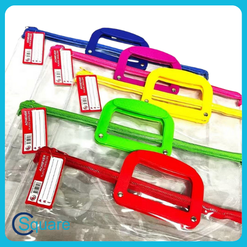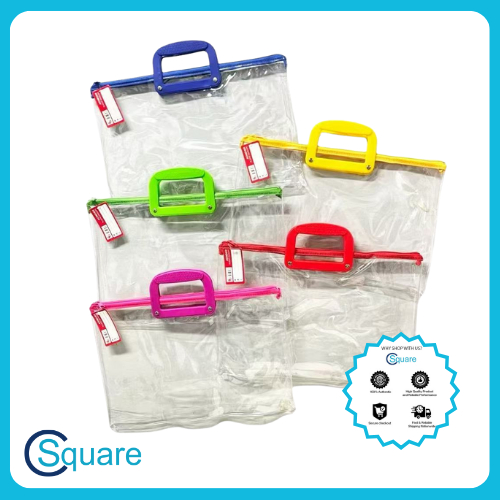 CSQUARE Achiever Brand Long Transparent Zippered Plastic Envelope with Handle AB011