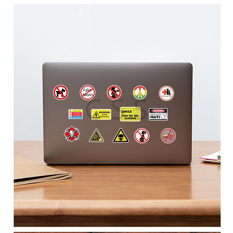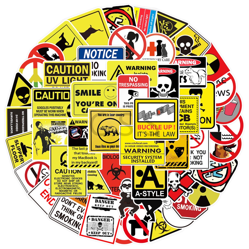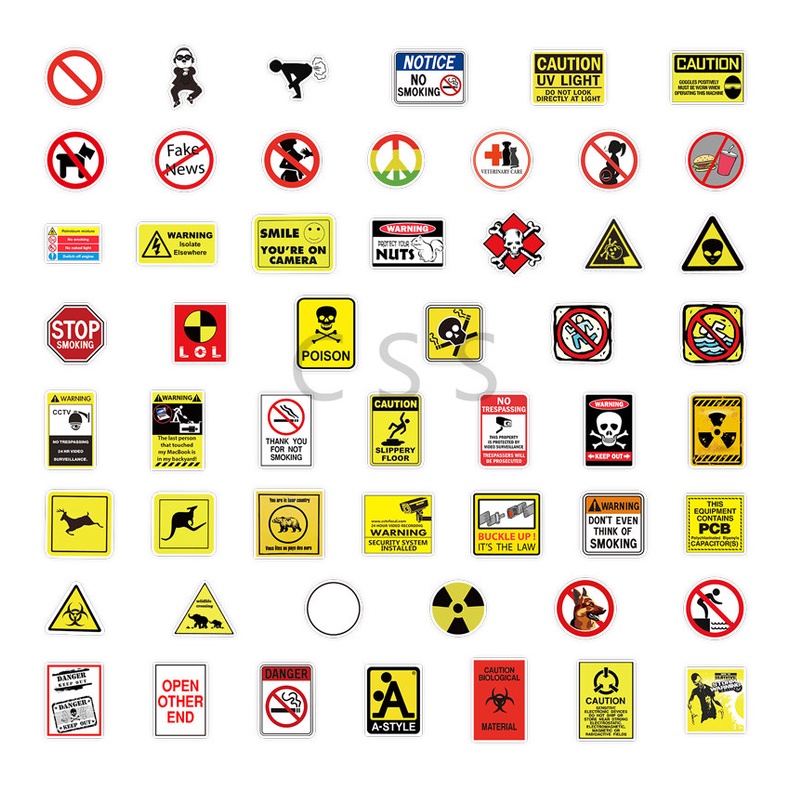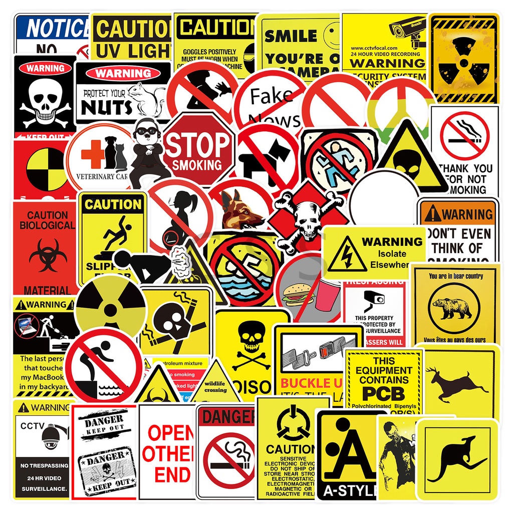 CSS. 50Pcs/Sheet Yellow Sign Waterproof Stickers Warning Sign Children's Learning Sticker