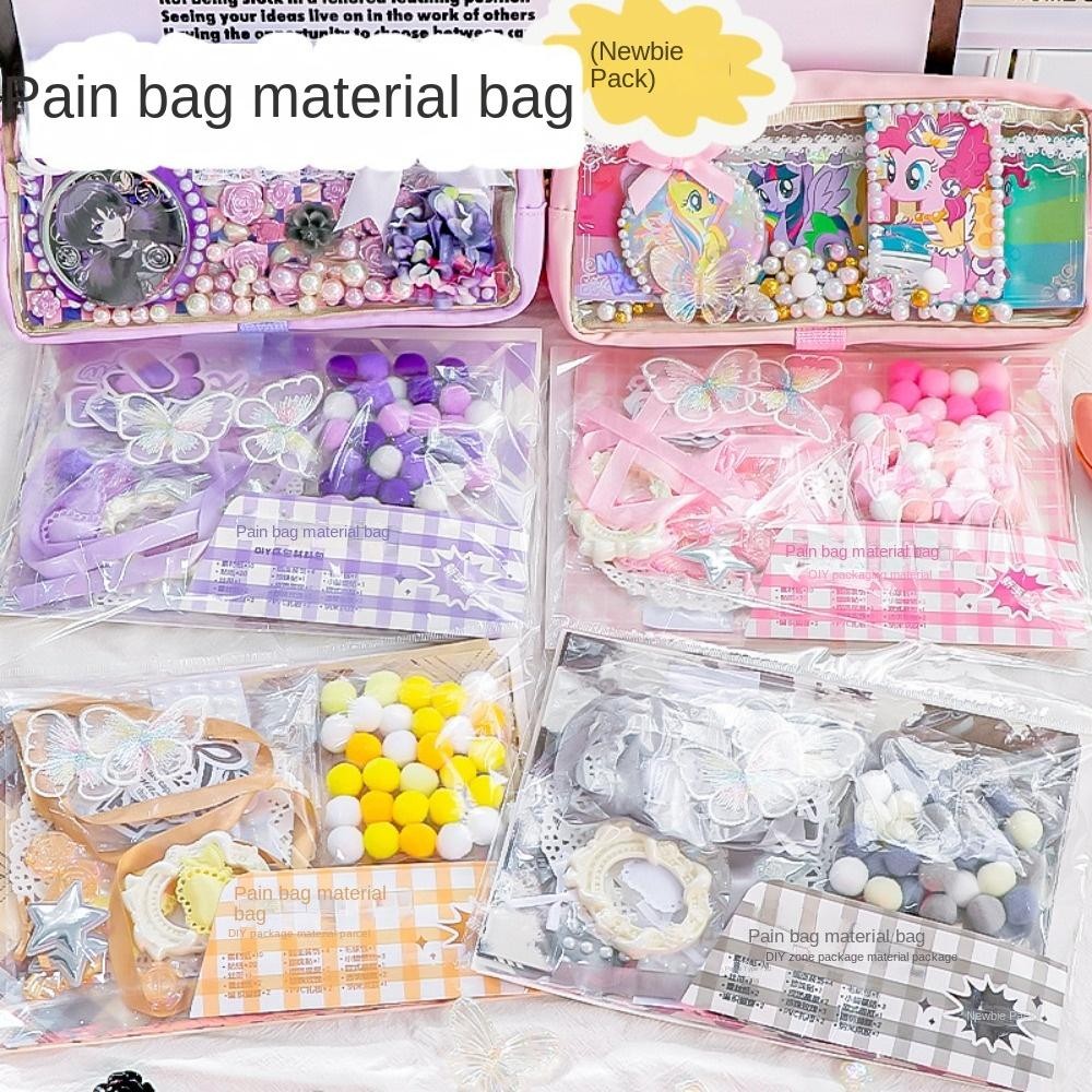 CUCKO Itabag Material Pack, DIY Retro Decor Badge Stickers Set, Cartoon Beginer Peral Beads Butterfly Scrapbook Supplies Itabag