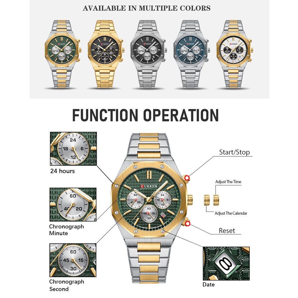 CURREN New Men's Fashion Luxury Multifunctional Pointer Glow Stainless Steel Waterproof Chronograph Casual Sports Quartz Watch 8440