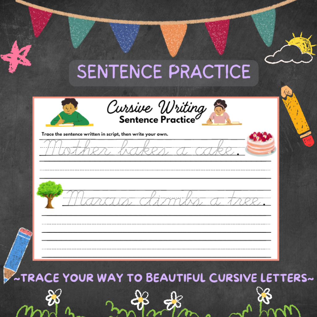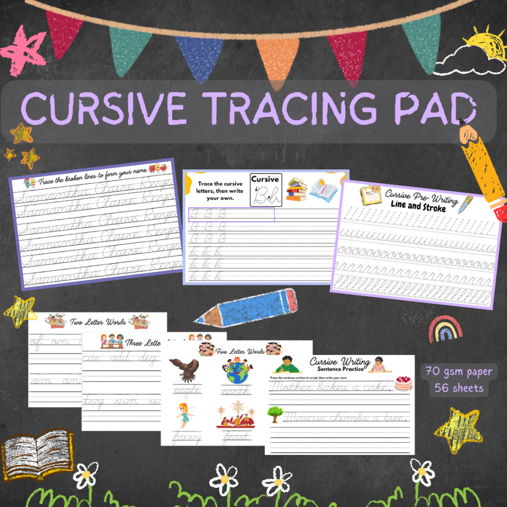 CURSIVE TRACING PAD FOR KIDS (name, alphabet, words, sentences)