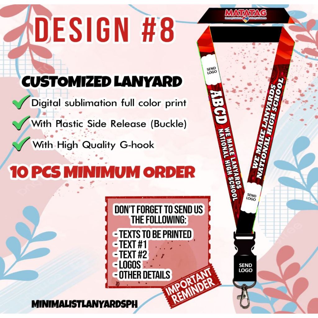 CUSTOMIZED COMPANY / SCHOOL Lanyards ID Lace 10PCS MINIMUM ORDER DON'T FORGET TO MESSAGE DETAILS