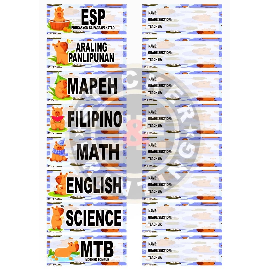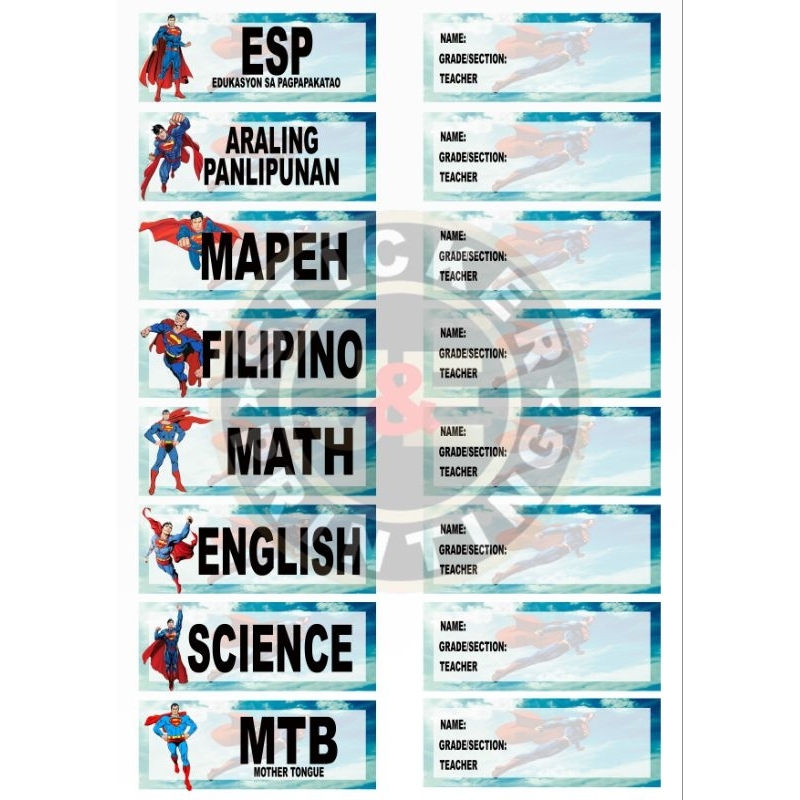 CUSTOMIZED STICKER LABEL FOR SUBJECT & NAME 16PCS (8PCS NAME & 8PCS SUBJECT)