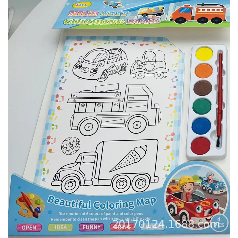 CUTE DESIGN COLORING BOOK WITH WATERCOLOR