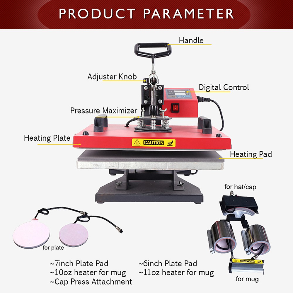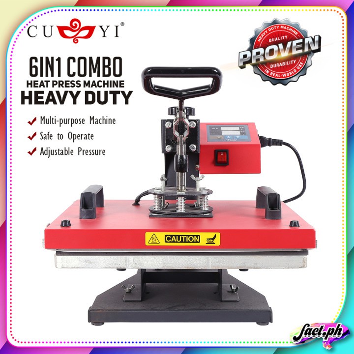 CUYI 6in1 Combo Heat Press Machine (flatbed / cap press / plate press / mug press in 1 machine)