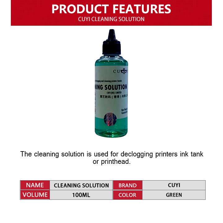 CUYI Cleaning Solution for Inkjet Printer with Syringe & Hose