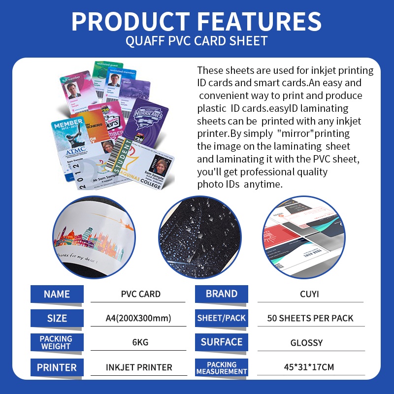 CUYI PVC ID Sheet Inkjet Printable A4 size ( 50 SETS )