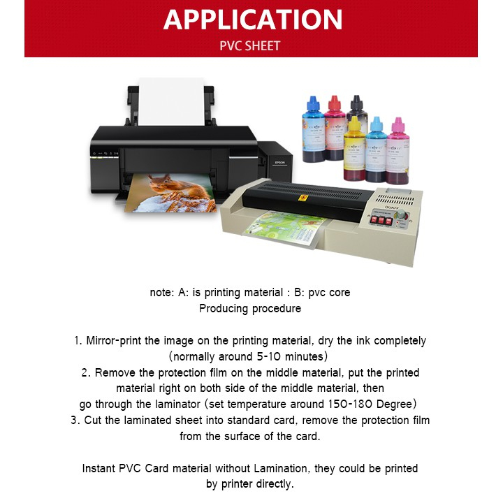CUYI PVC Sheet / PET Sheet A4 Size For ID Printing , Calling Card Making (50 sets)