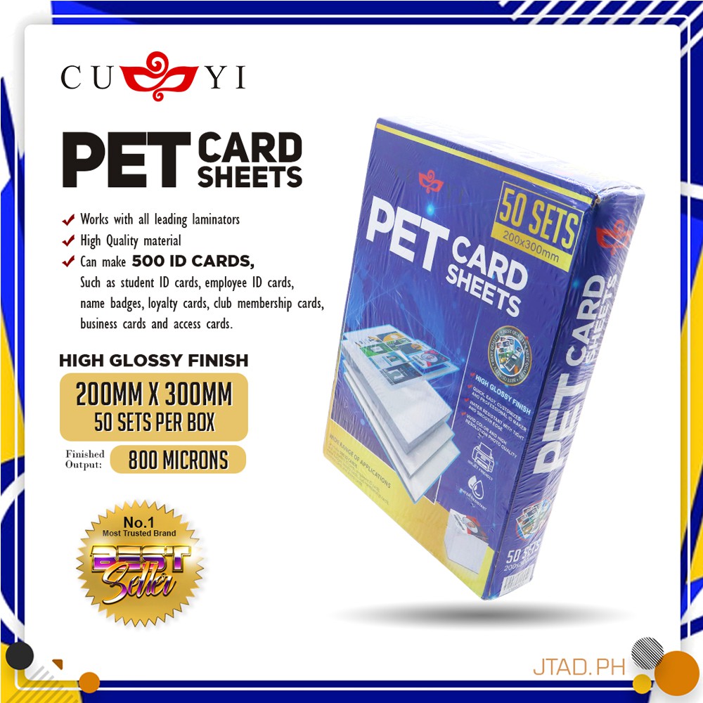 CUYI Pet Sheet For Id Printing / Bagtag / Calling Card Making / High glossy A4 Size (50 sets)
