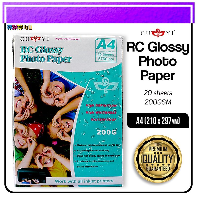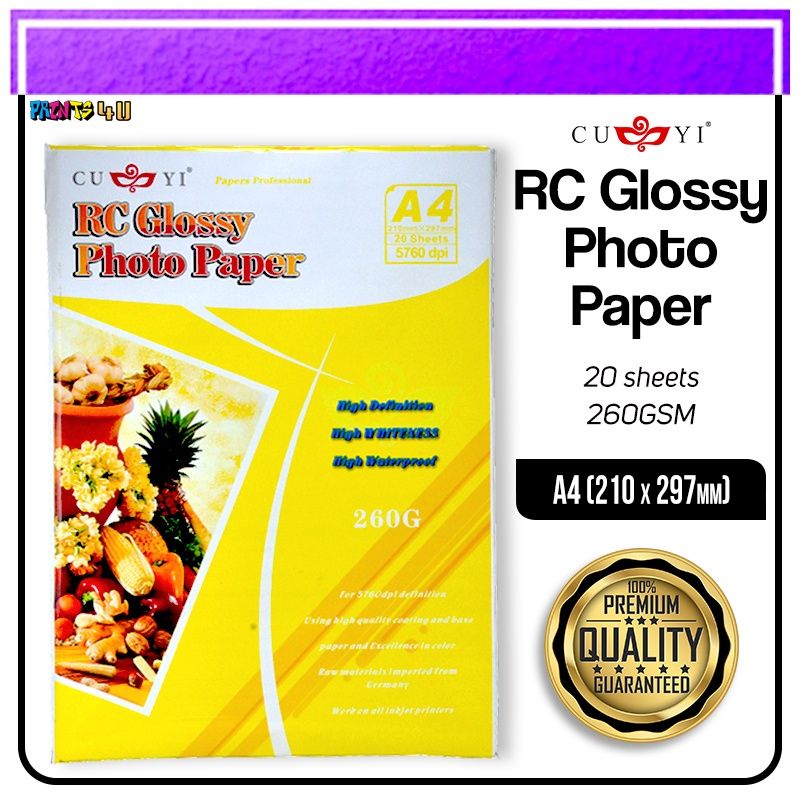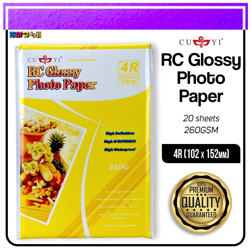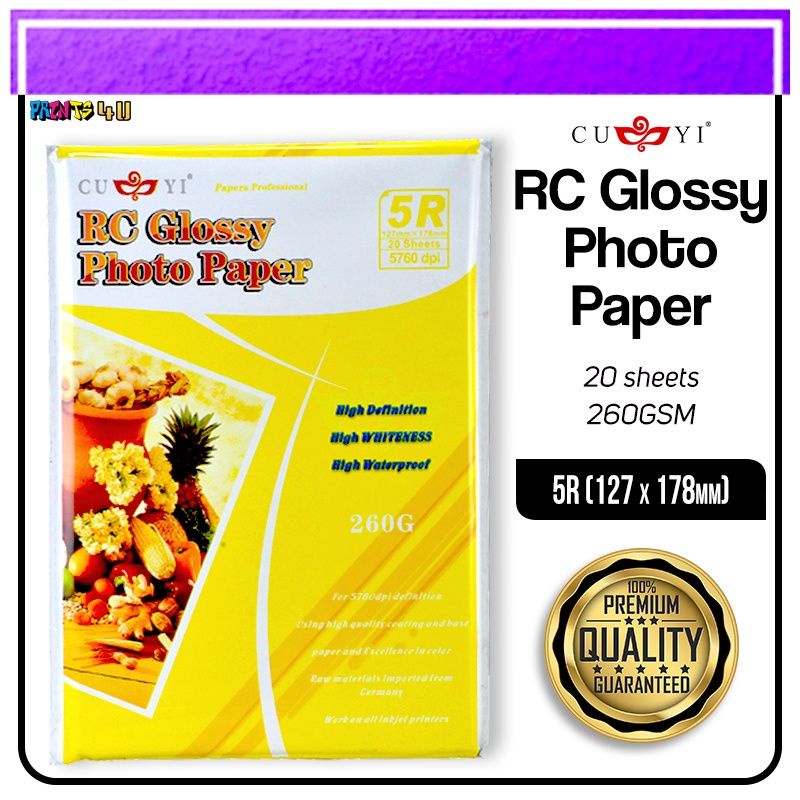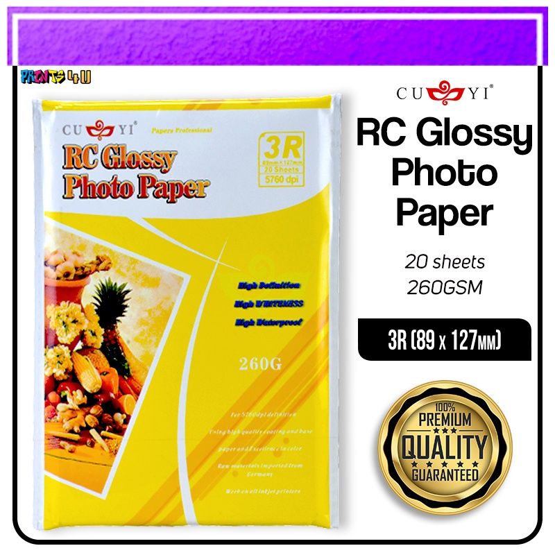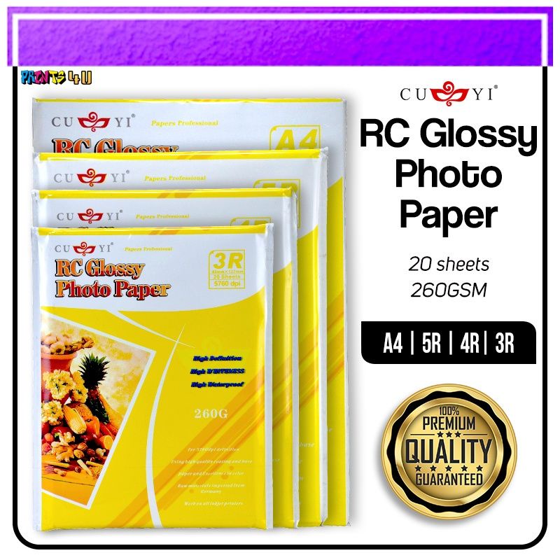 CUYI RC GLOSSY PHOTO PAPER 260gsm 3R 4R 5R 20SHEETS PER PACK