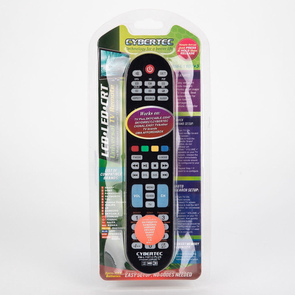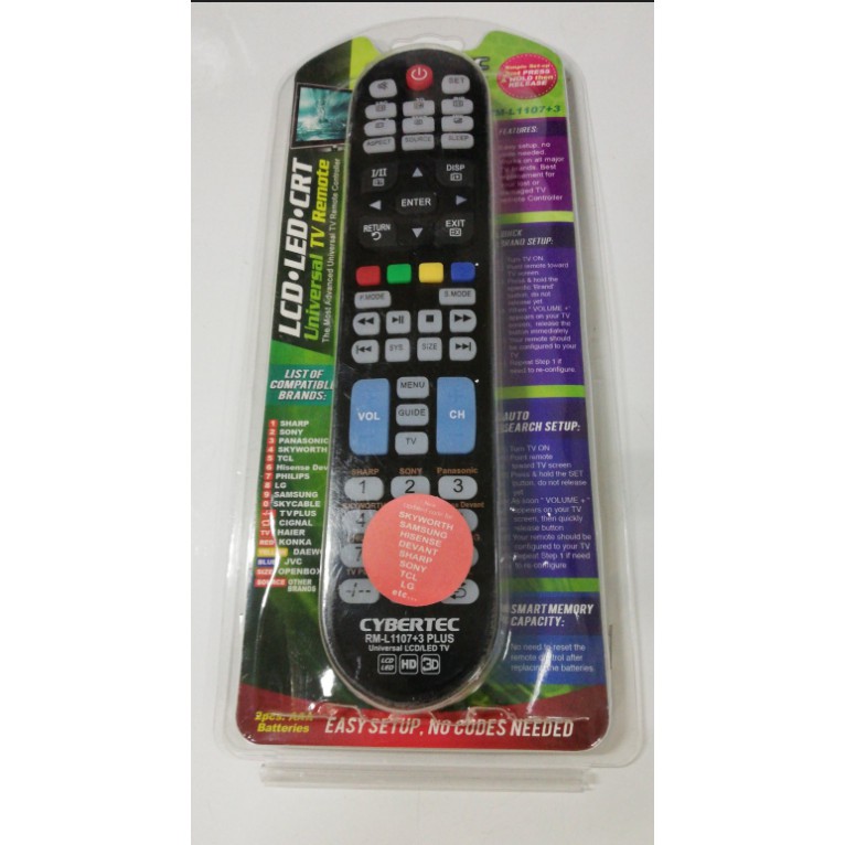 CYBERTEC Universal Remote Control Spare Television Smart TV Compatible w All Brand FastShip RM1107+3