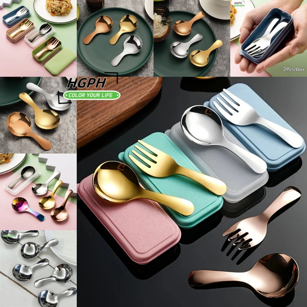 【HGPH】 Portable Spoon Fork Tableware Outdoor Camping Stainless Steel Cutlery Set For Lunch Hiking Camp Cooking Supplies Hot