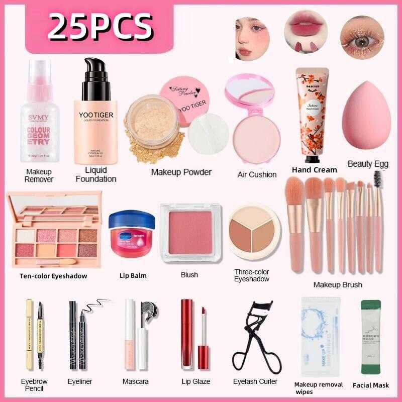 25Pcs Makeup Set Cosmetic Kit Up Spray+Eyeshadow Palette+Kit Liquid Ywk6-1099