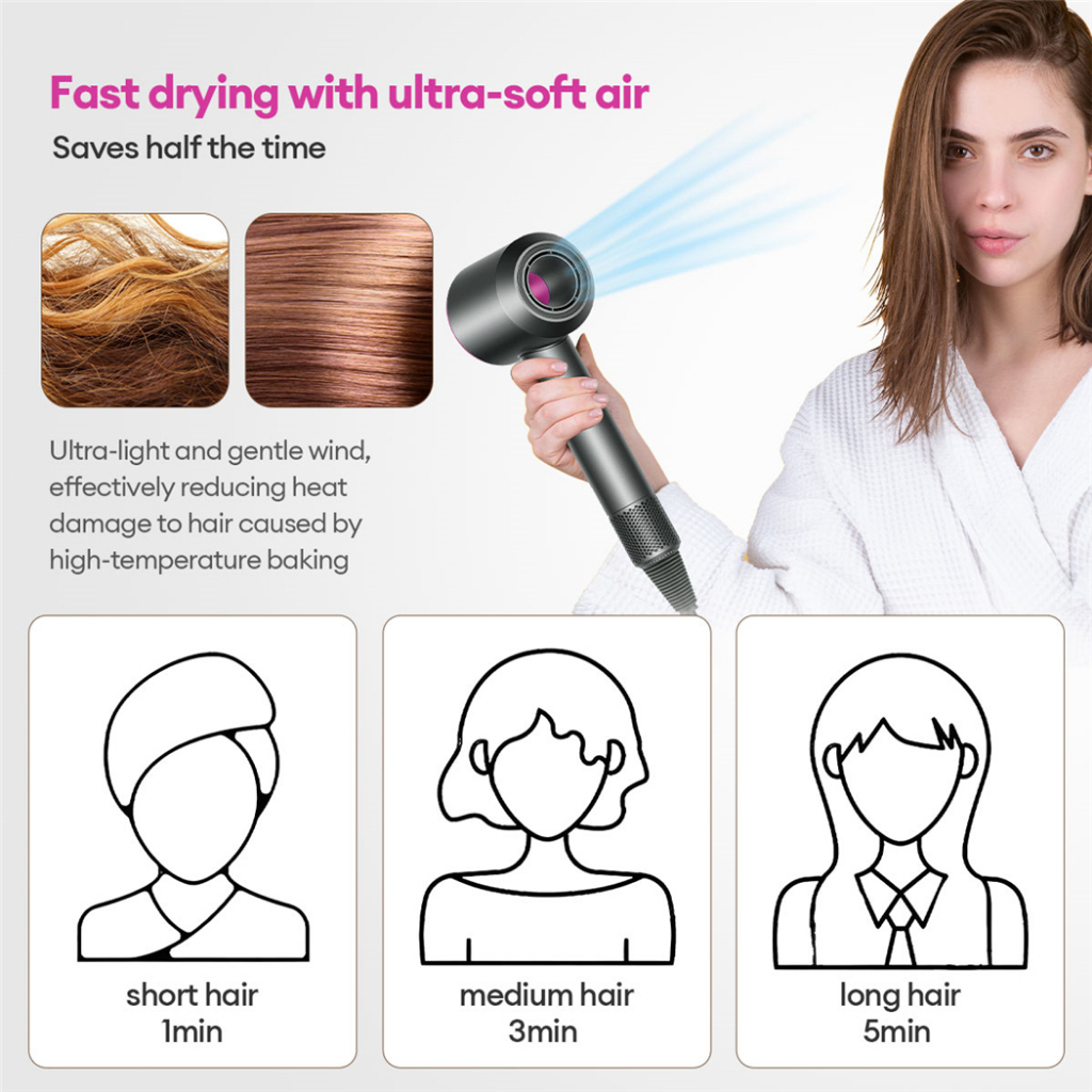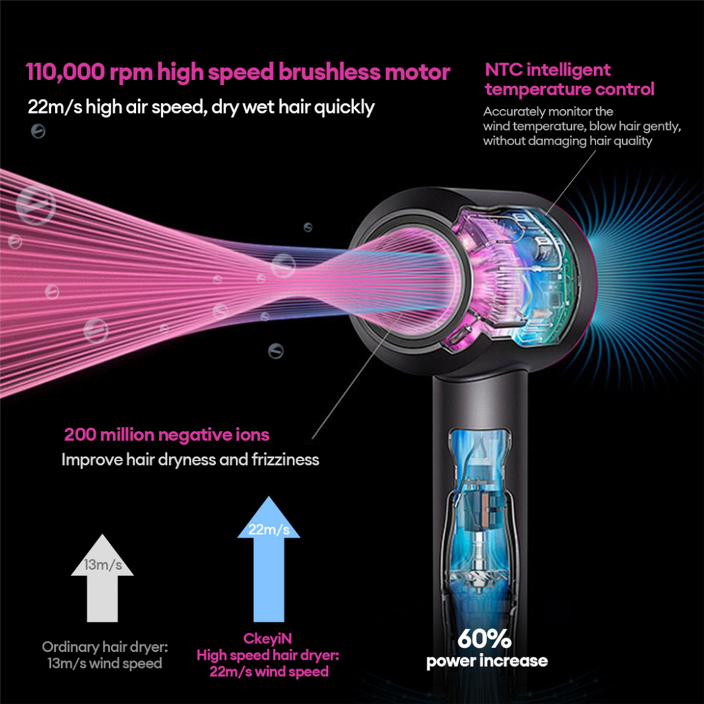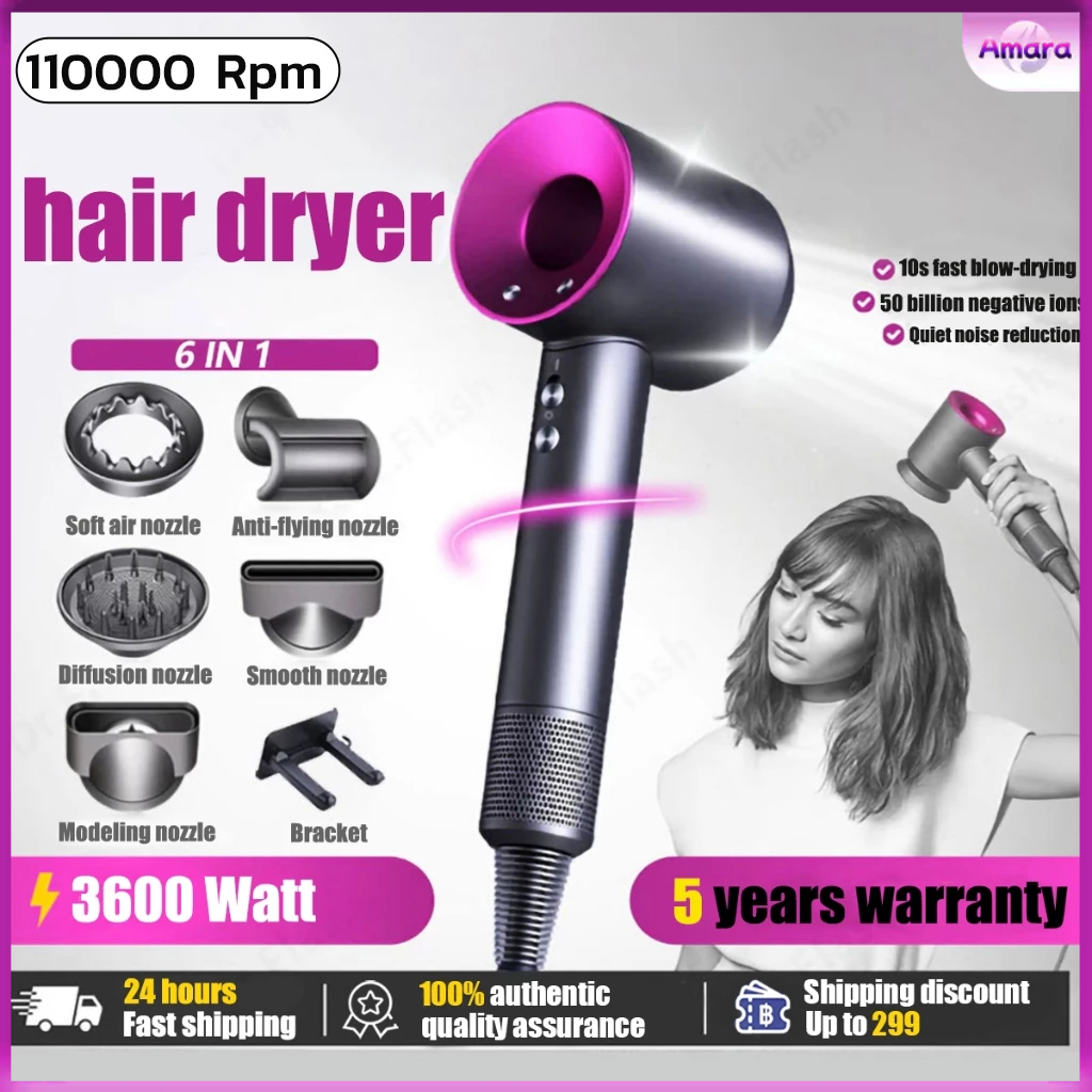 High-Speed Hair Dryer 3600W Quick Drying Blower 6 in1 Negative Ion Portable Hair Dryer 110000 Rpm
