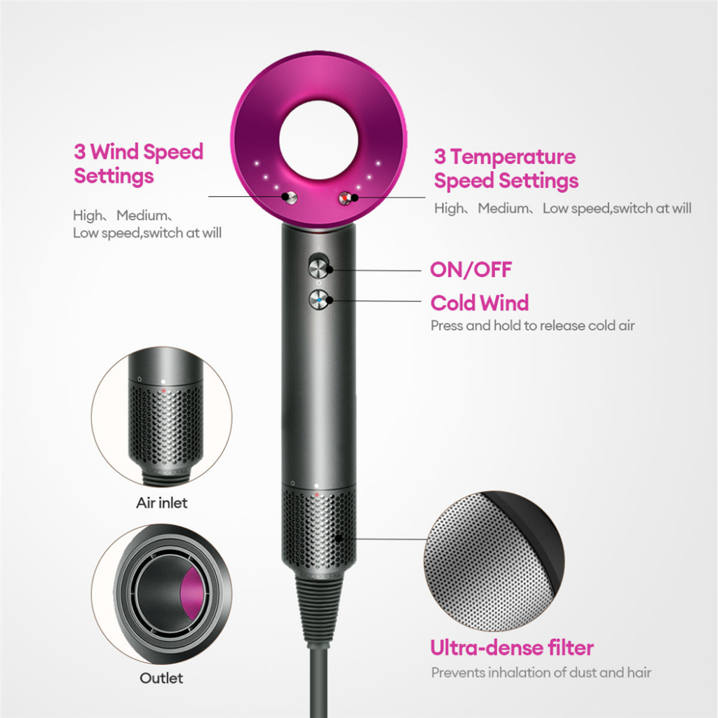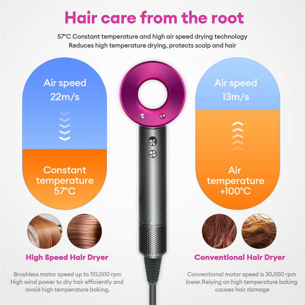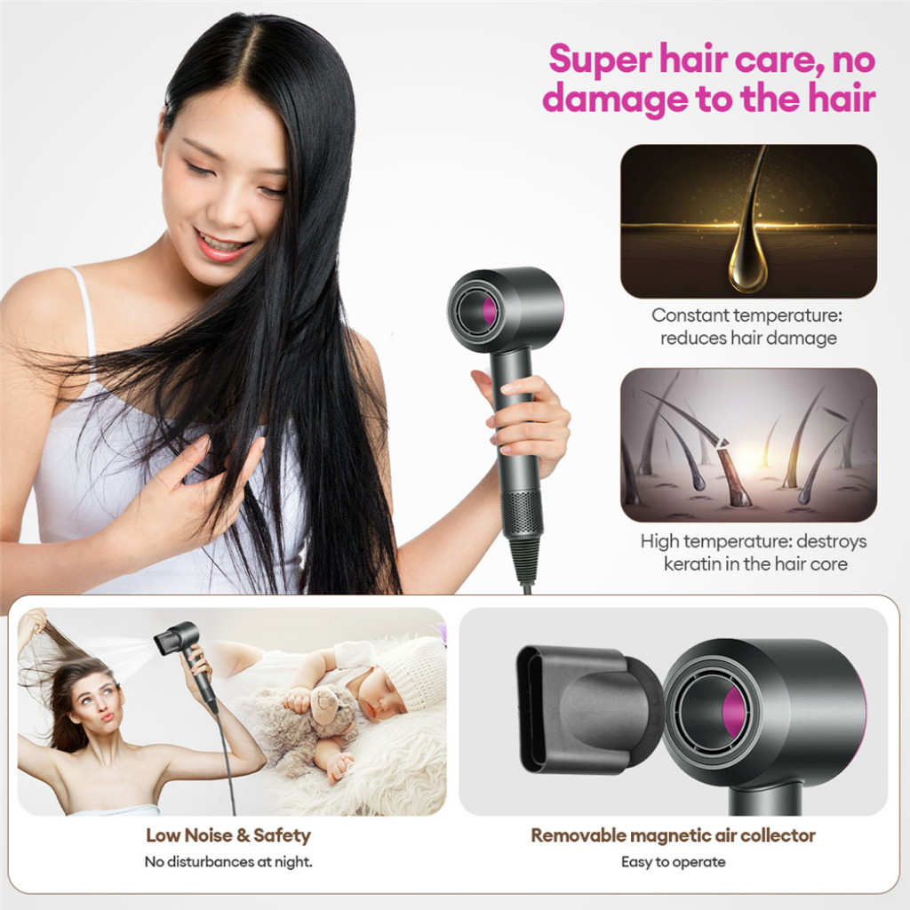 High-Speed Hair Dryer 3600W Quick Drying Blower 6 in1 Negative Ion Portable Hair Dryer 110000 Rpm