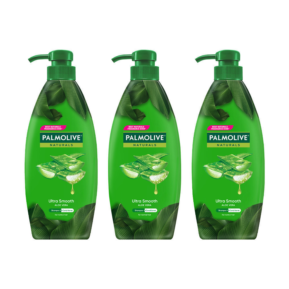 Palmolive Naturals Ultra Smooth Shampoo - with Aloe Vera for Normal Hair, 600ml Pump Pack of 3