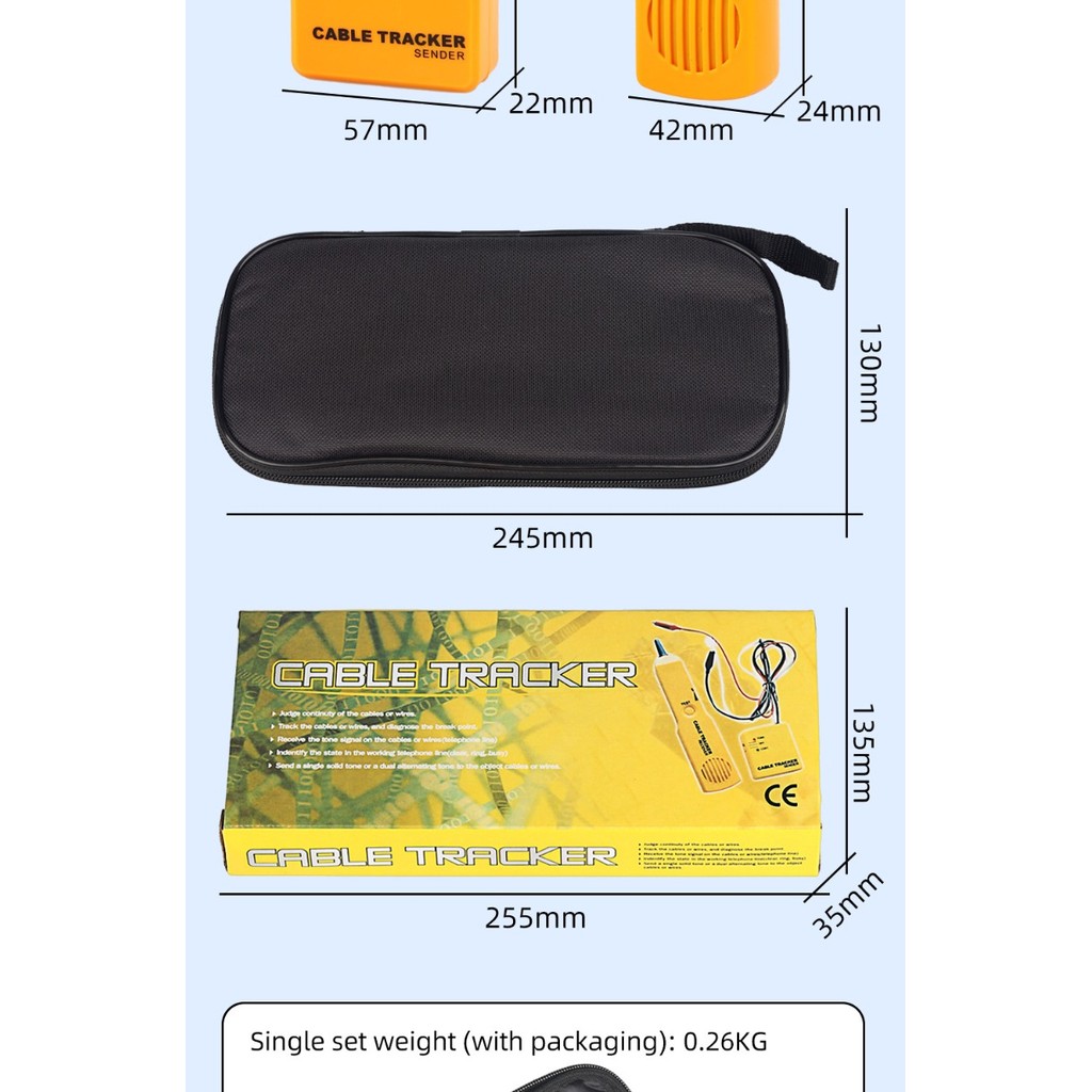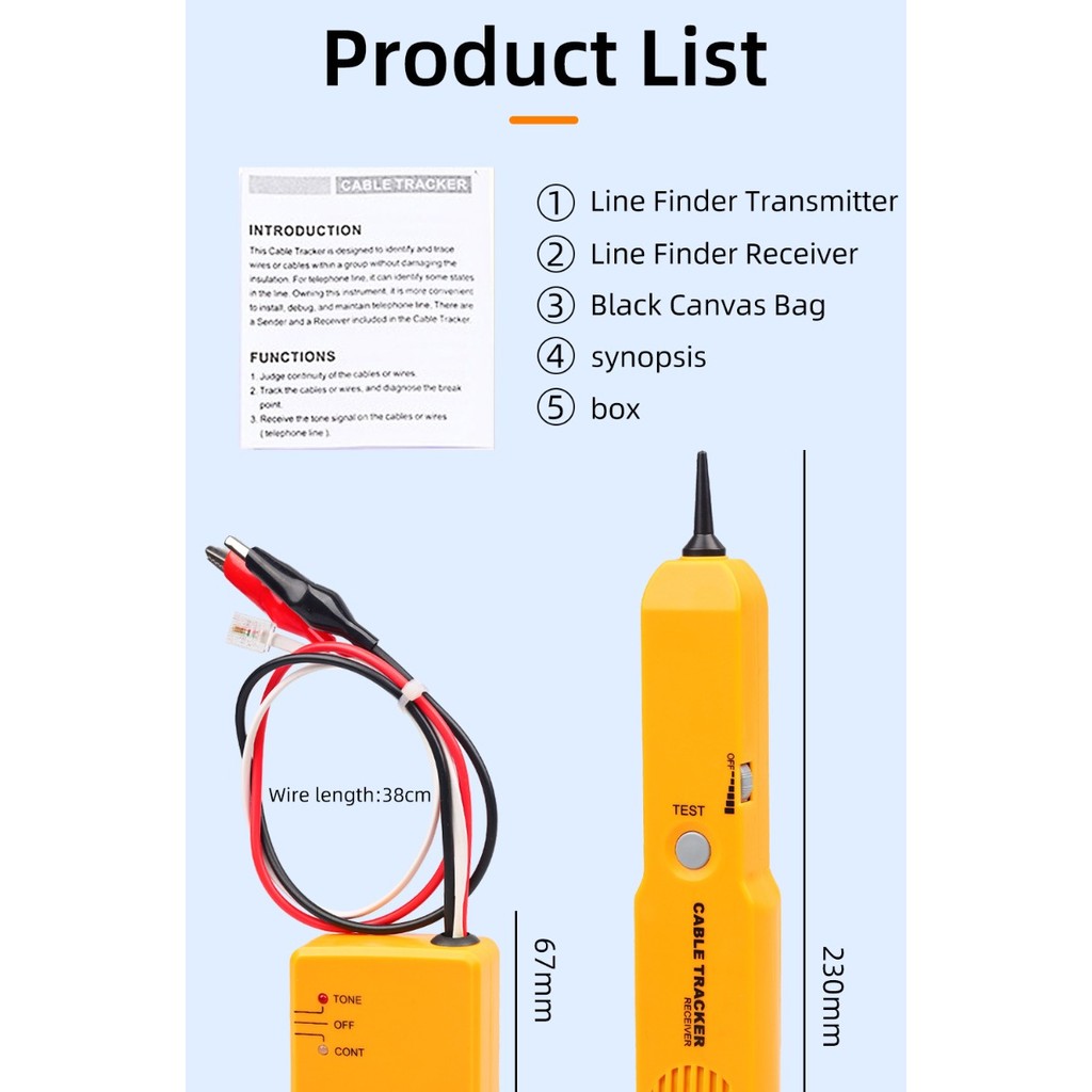 Cable Finder Tone Generator Tracer Probe Line Tracer Cable Circuit Tester Function Alligator Clips RJ11 Plug Finder Tool