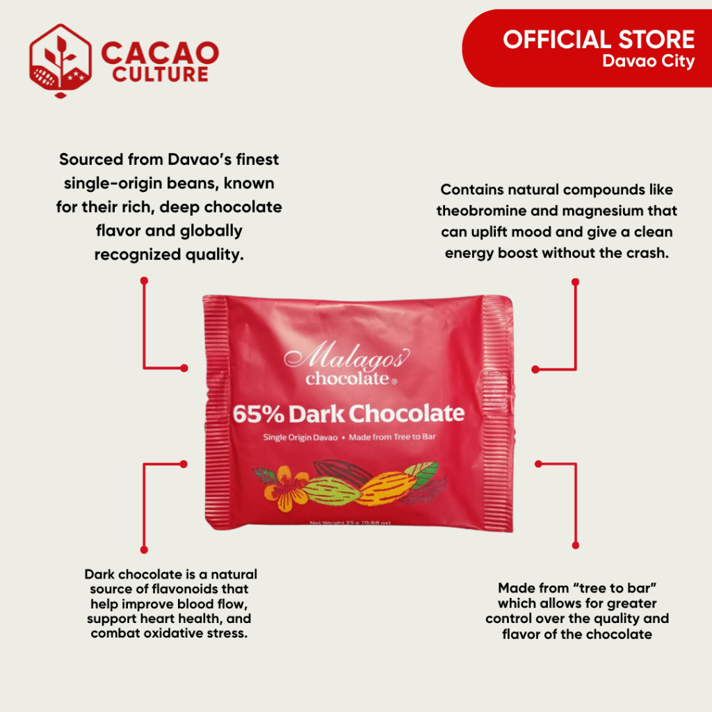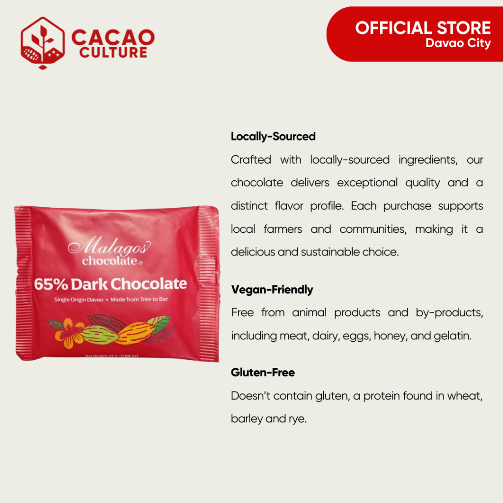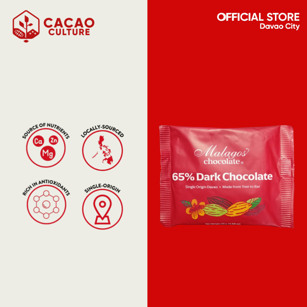 65% Dark Chocolate Bar 25g - MALAGOS - Rich Trinitario Dark Chocolate