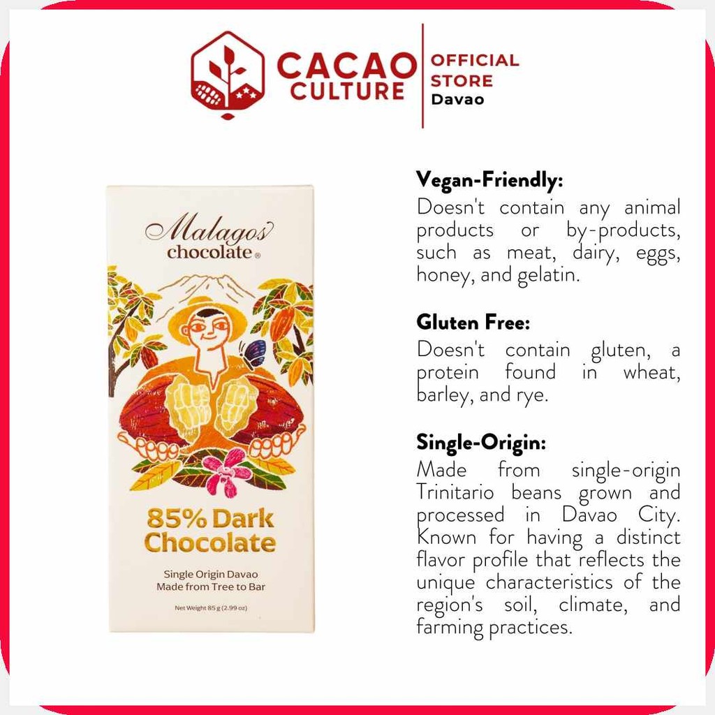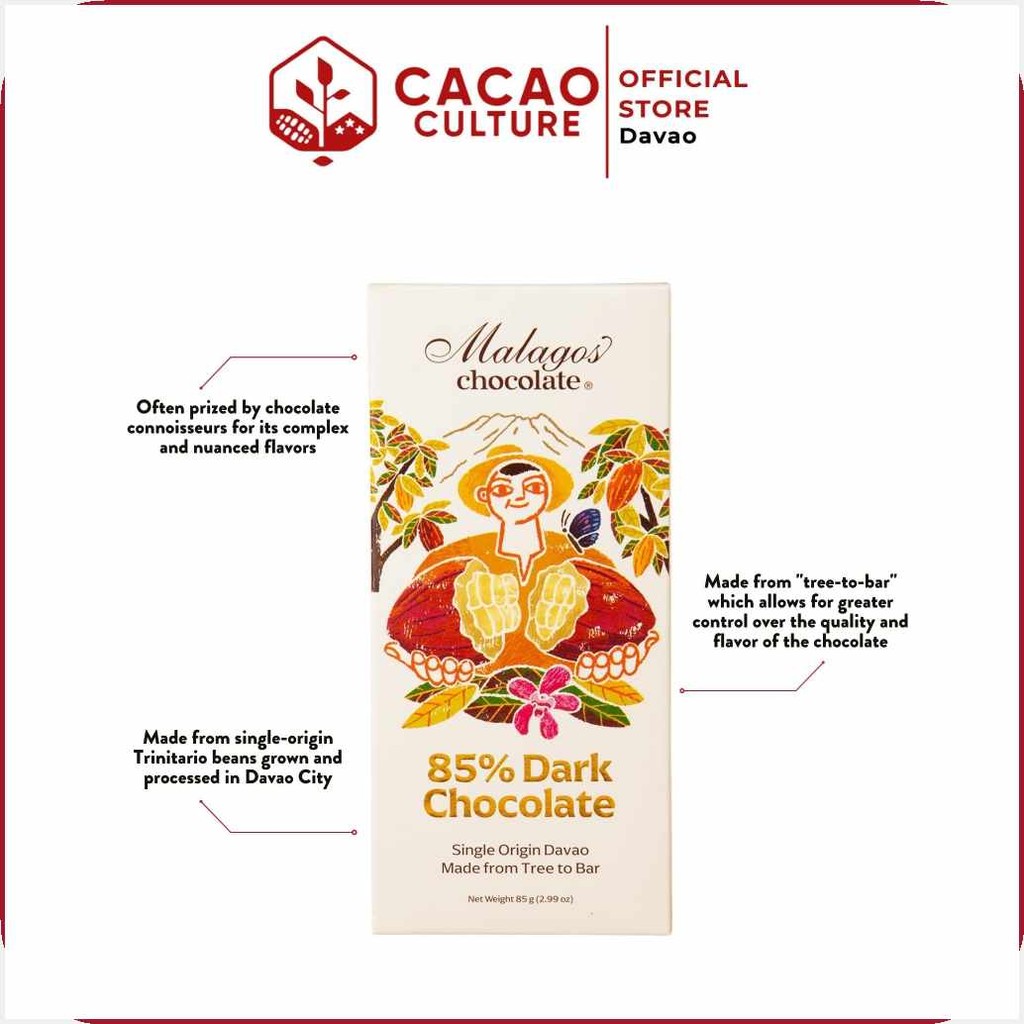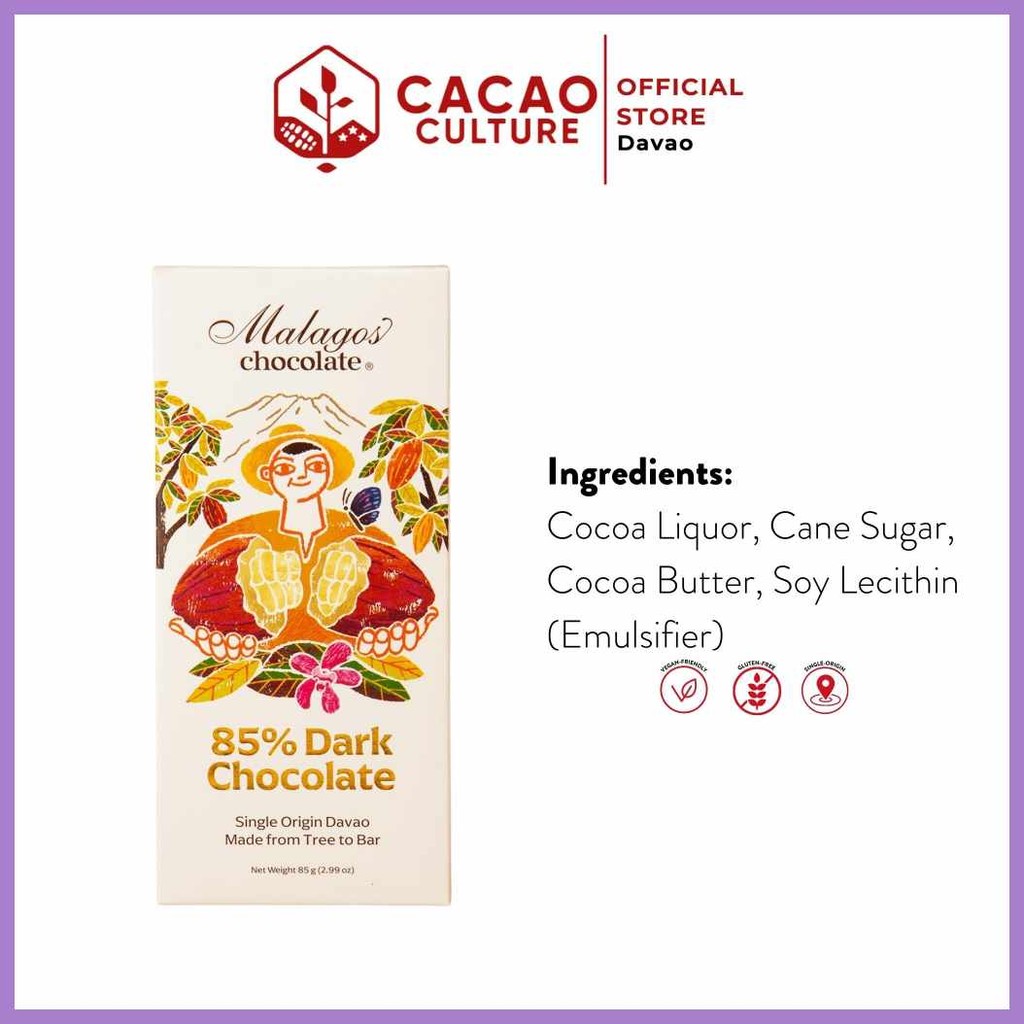 Cacao<s>Culture=Aa@|Malagos_g:-85%%N:Dark&D;Chocolate&t;Bar&Y;85g&al;|- Premium Davao Chocolate Sna