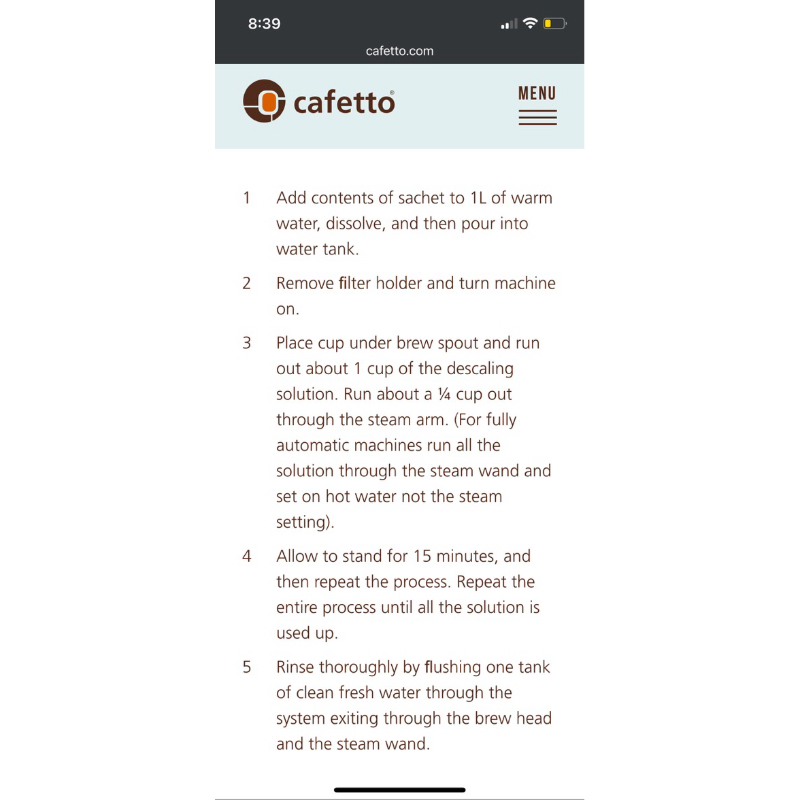 Cafetto RENEW/RESTORE Espresso Machine Descaler Powder (25g)