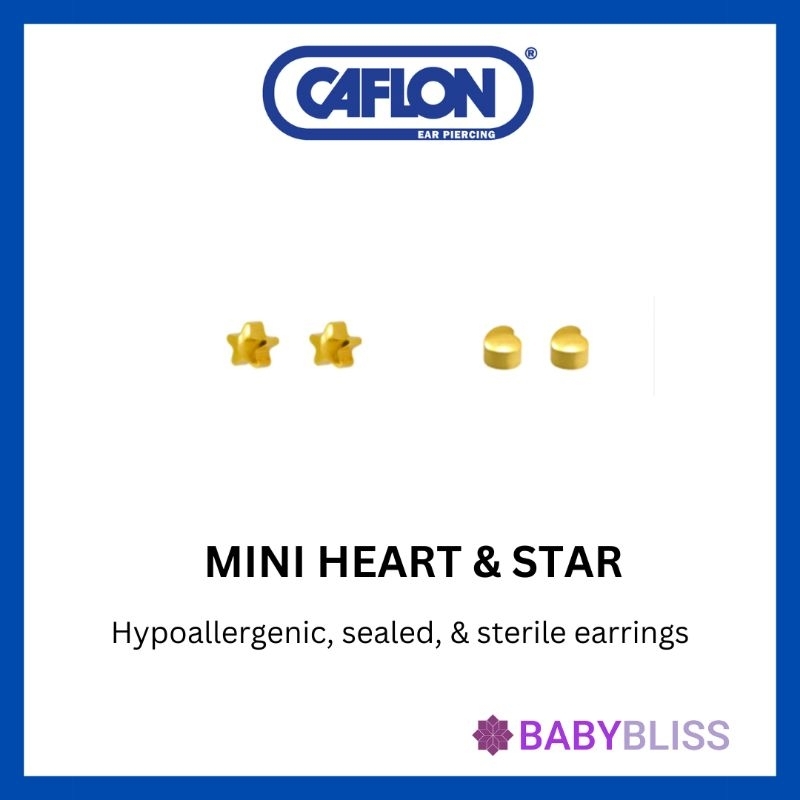 Caflon MINI STAR and HEART (2mm) Earrings (Hypoallergenic and sterile) for women and baby