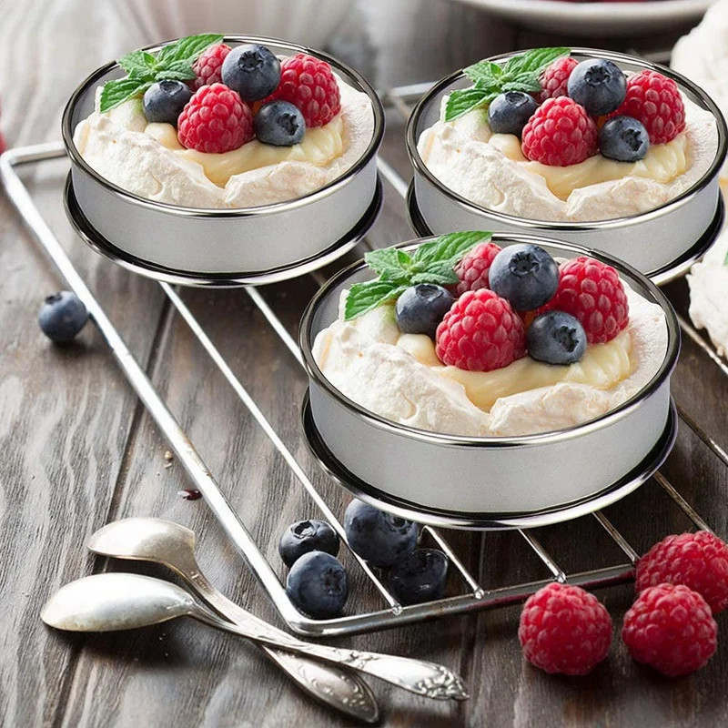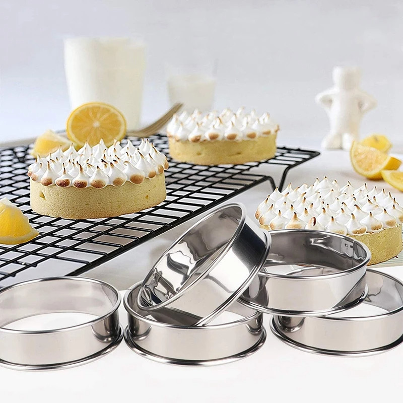Cake Mold - 8/10CM Stainless Steel Circular Baking Mold - Double Rolled Edge Mousse Cake Ring - Cookies, Desserts, Fruit Cutting Molds - Lemon Tart Filling Ring - Baking Tools