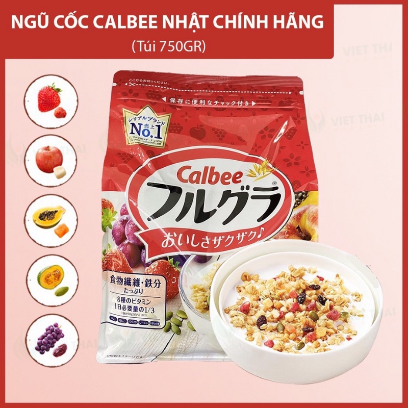 Calbee Japanese Cereal, Calbee Japanese Diet Fruit Cereal 750gr - Red, Genuine Hanoi Grade 1 Product