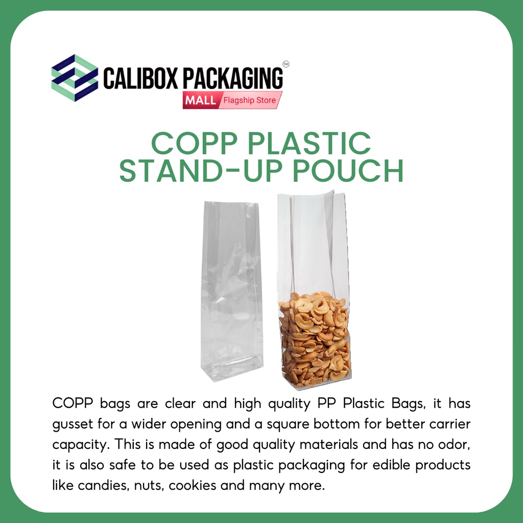 Calibox Packaging COPP Plastic Bag, Food Pouch, Stand Up Pouch, Gusset Bag, 100pcs.