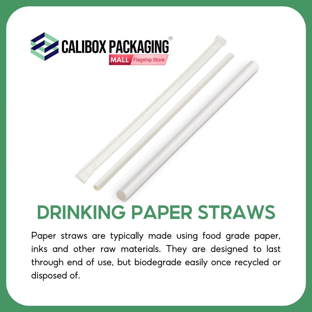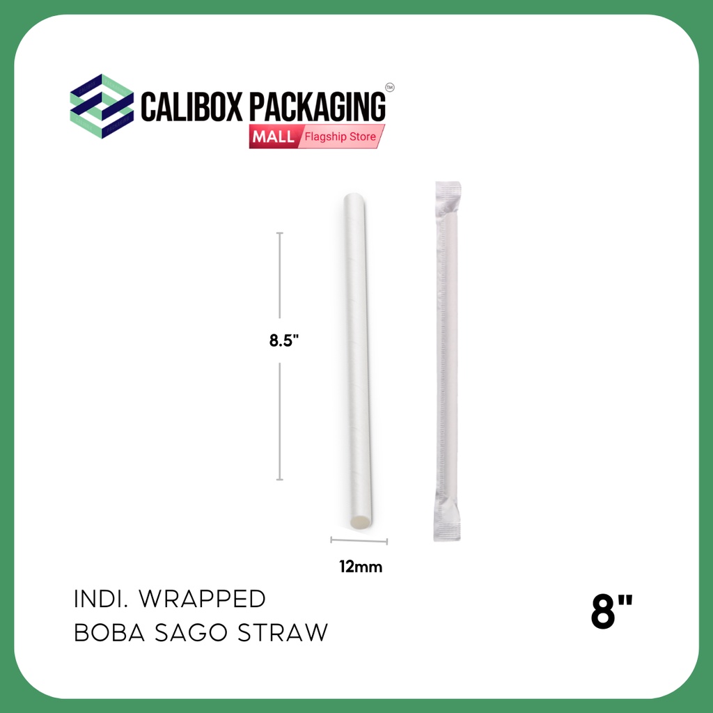 Calibox Packaging Paper White Straw, Boba Straw, 50-100pcs