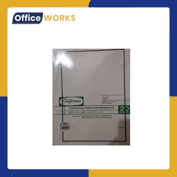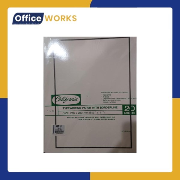 California Border Line 1/2 x 1 Typewriting Paper Short 20's