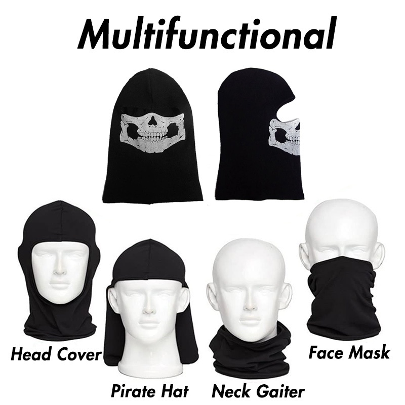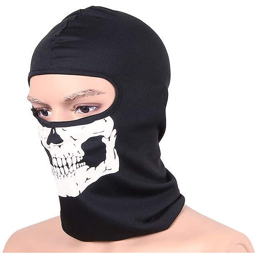 Call of Duty Mask COD Ghost Mask Breathable Mesh Rider Balaclava Stretch Full Face Balaklava Tube Skull Print Mask Black Ghosts Print Motorcycle Mask Halloween Costume for Party and Halloween Cosplay yk