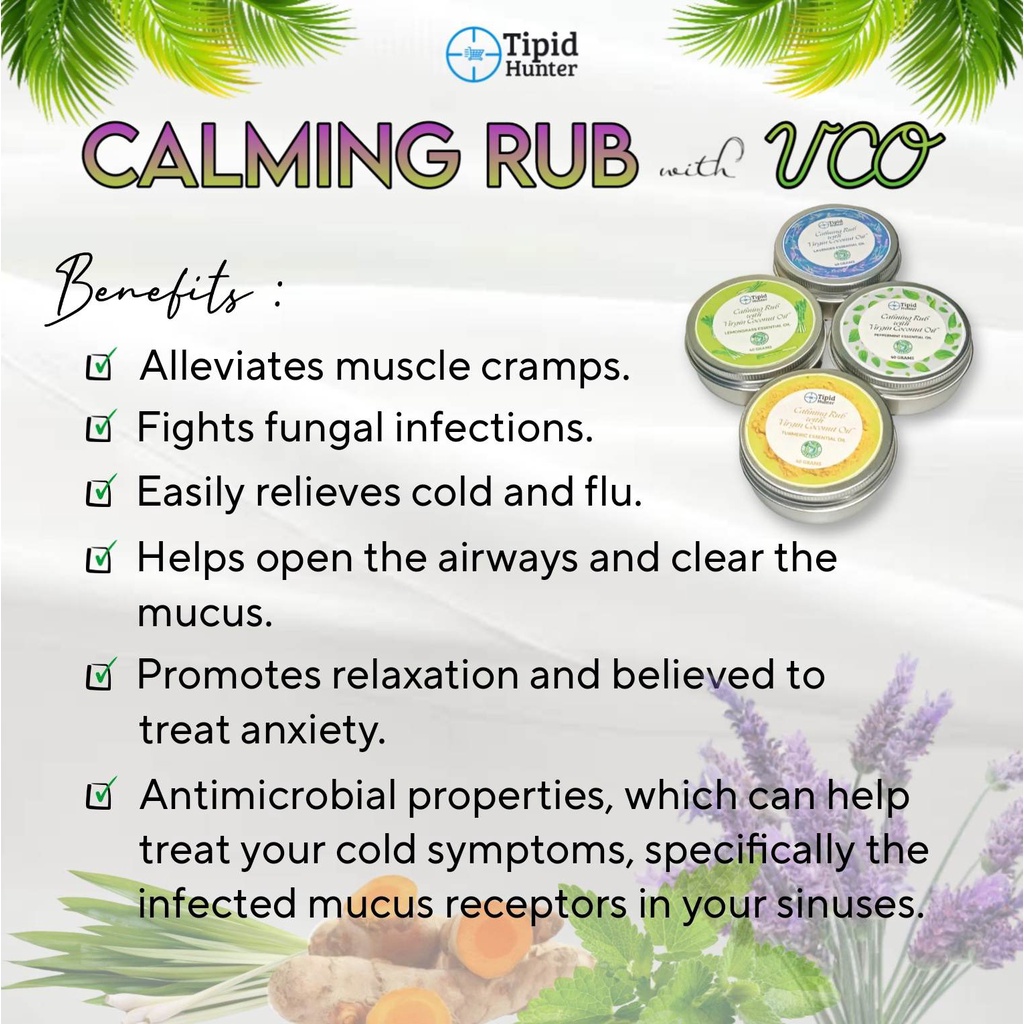 Calming Rub with Essential Oil, VCO Balm for Pain Relief, Massage Rub for Relaxation 40g
