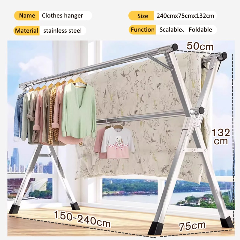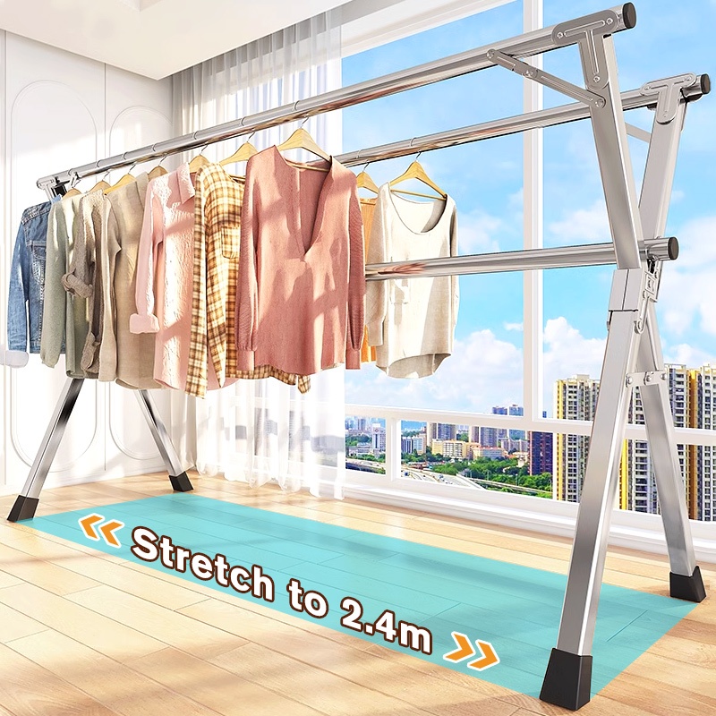 Cambond Foldable Stainless Steel Clothesline Hanger Stand Sturdy Clothes Drying Pole