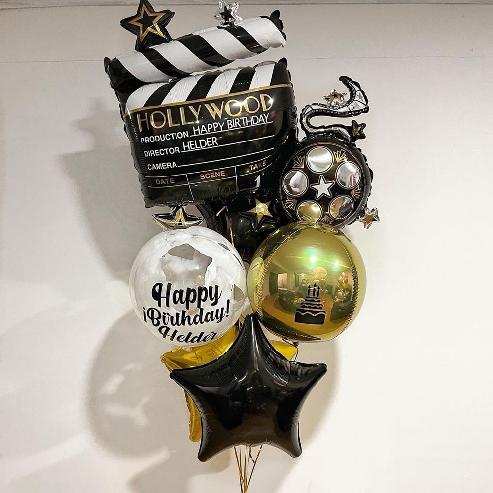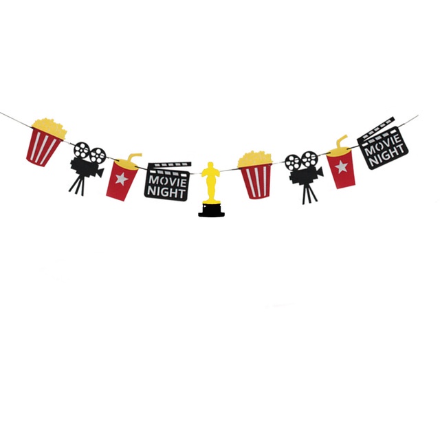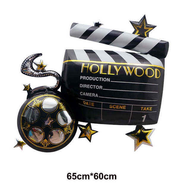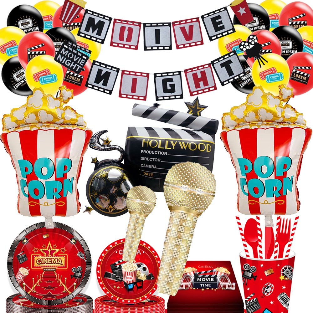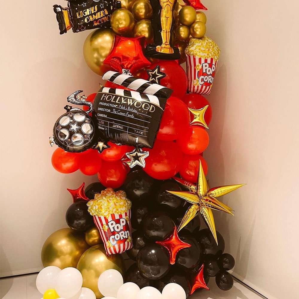Camera Holly Movie Popcorn Microphone Balloon for Movie Night Party Decor Retro Happy Birthday Party Background Banner Garland Balloon Supplies