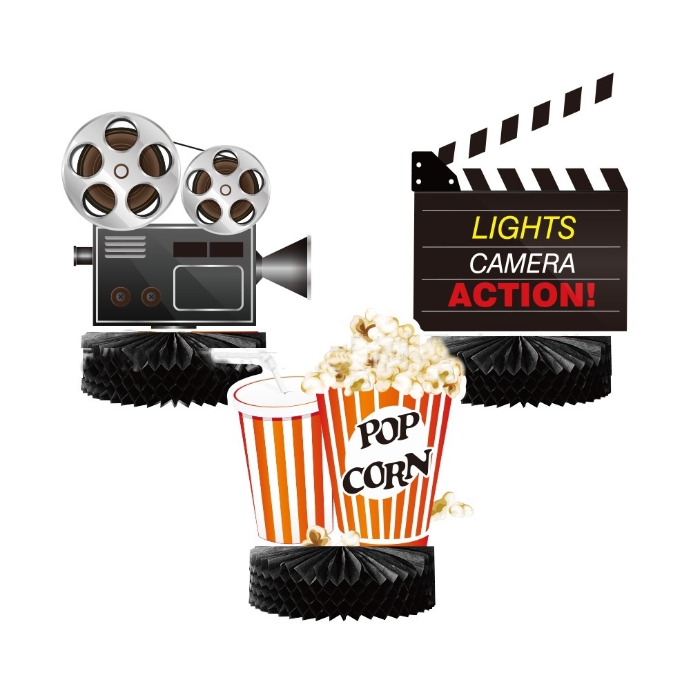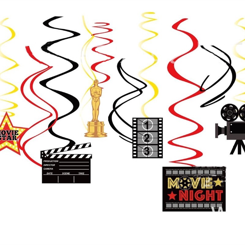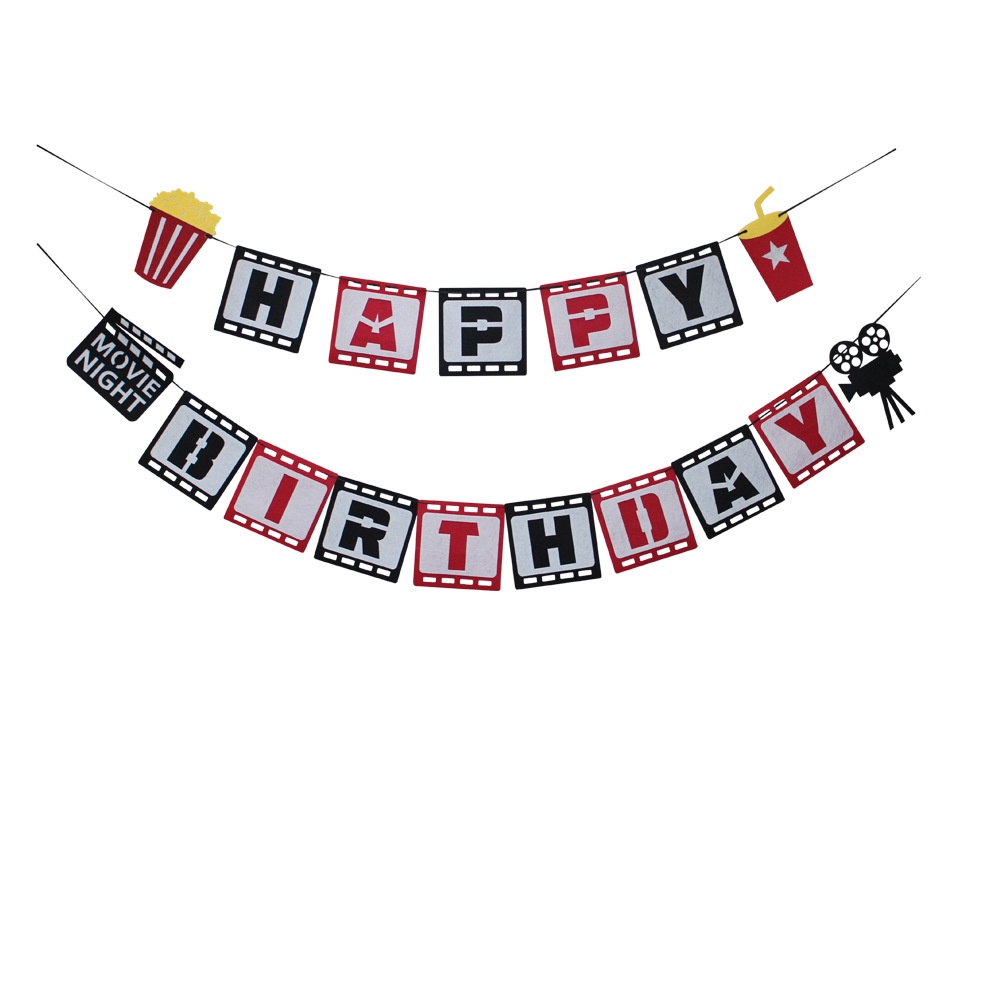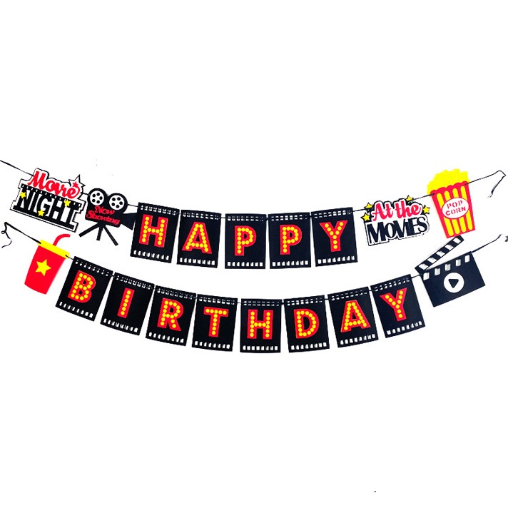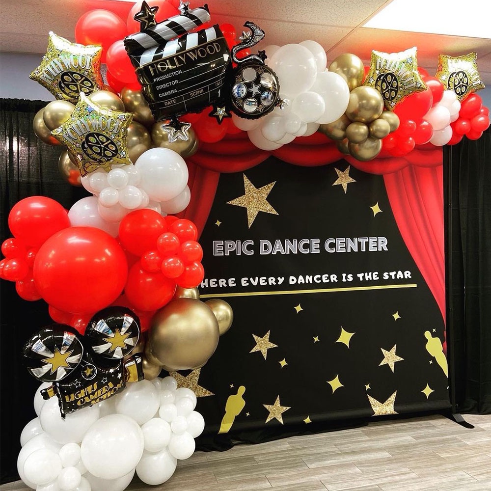 Camera Holly Movie Popcorn Microphone Balloon for Movie Night Party Decor Retro Happy Birthday Party Background Banner Garland Balloon Supplies