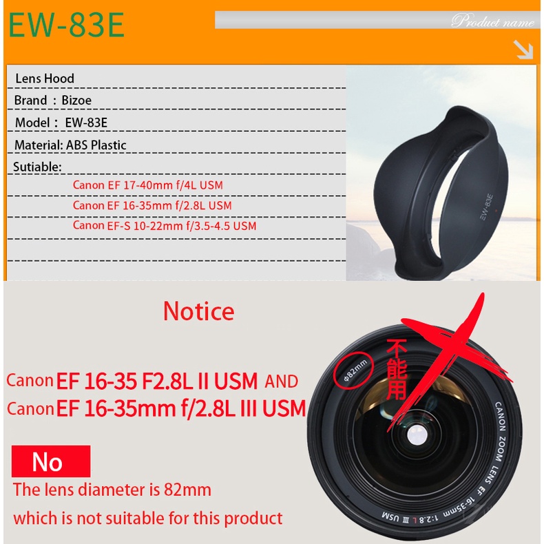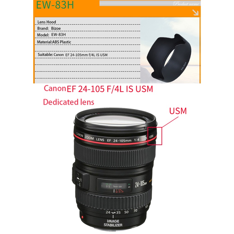 Camera Lens Hood For Canon EW-73B/EW-73C/EW-73D/EW-78D/EW-78E/EW-83E/EW-83H/EW-88C