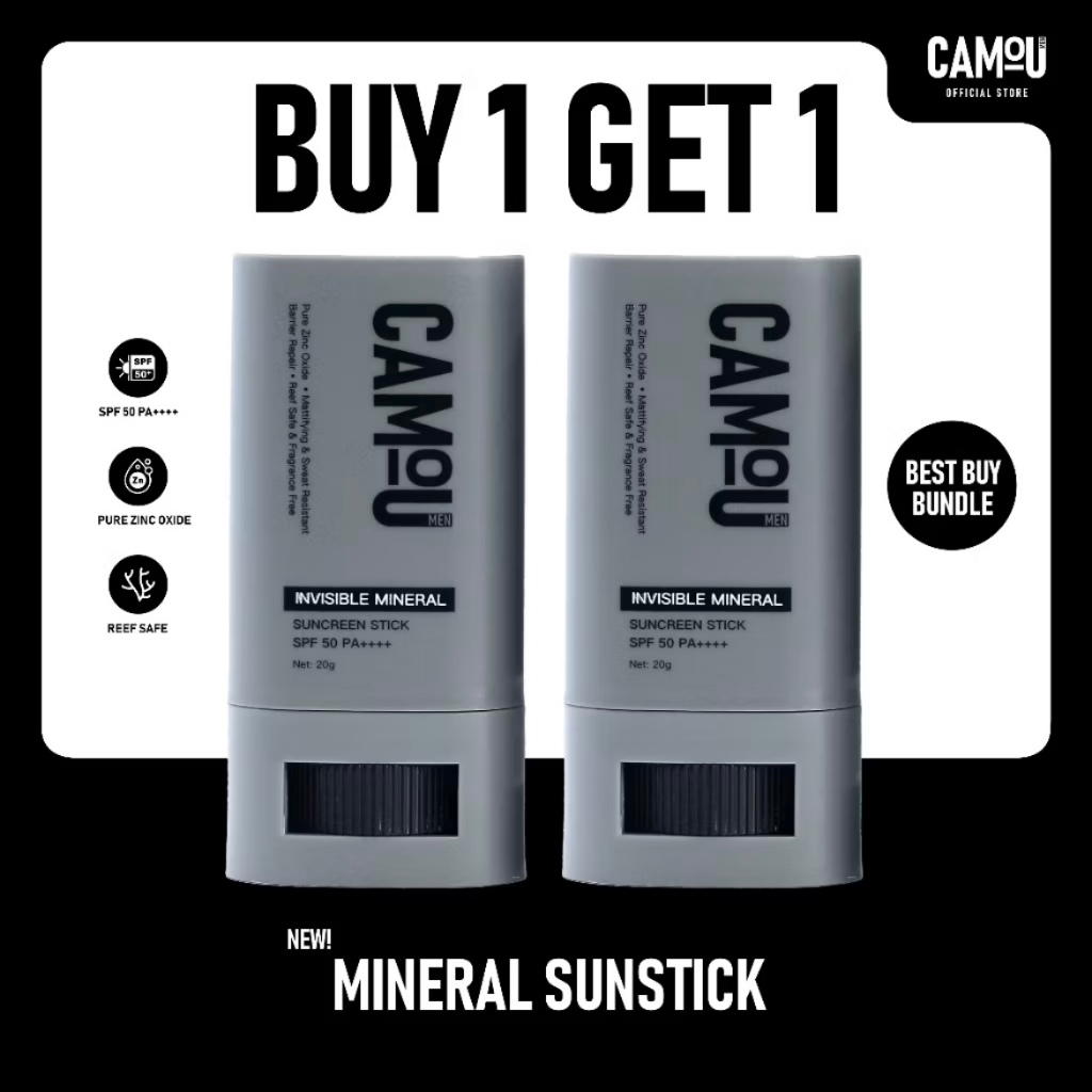 Camou Men's Mattifying Sun Stick SPF 50 PA++++ Vitamin C & Aloe Vera 20g