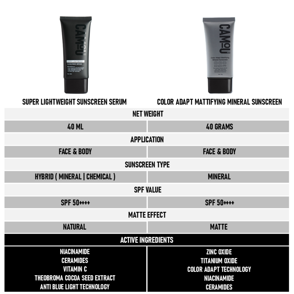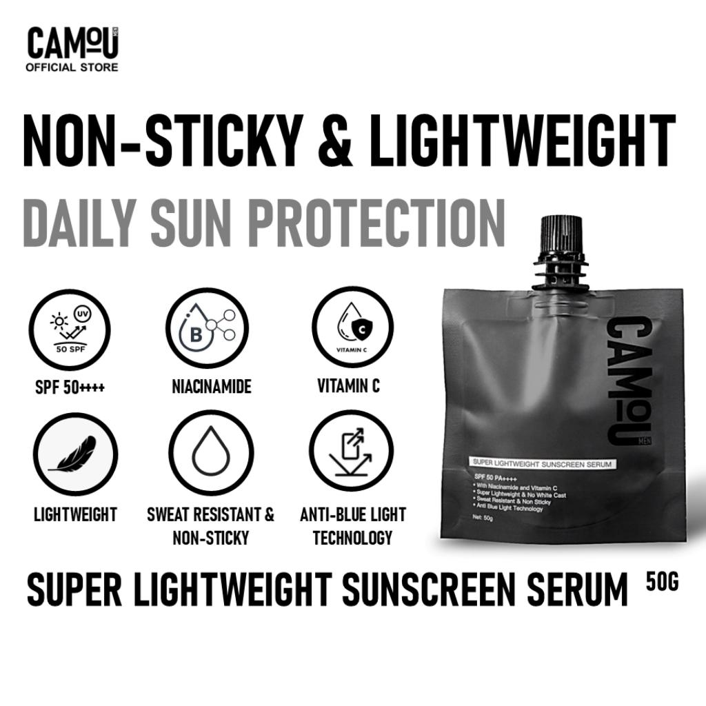 Camou Super Lightweight Sunscreen Serum SPF 50 PA++ Anti Blue Light Niacinamide Vitamin C Centella