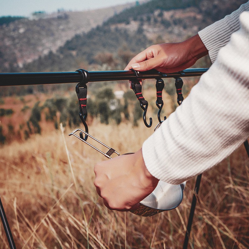 Camping Triangle Hanging Rack Aluminum Alloy Hanger Tripod Shelf Stand Cookware Tableware Organizer