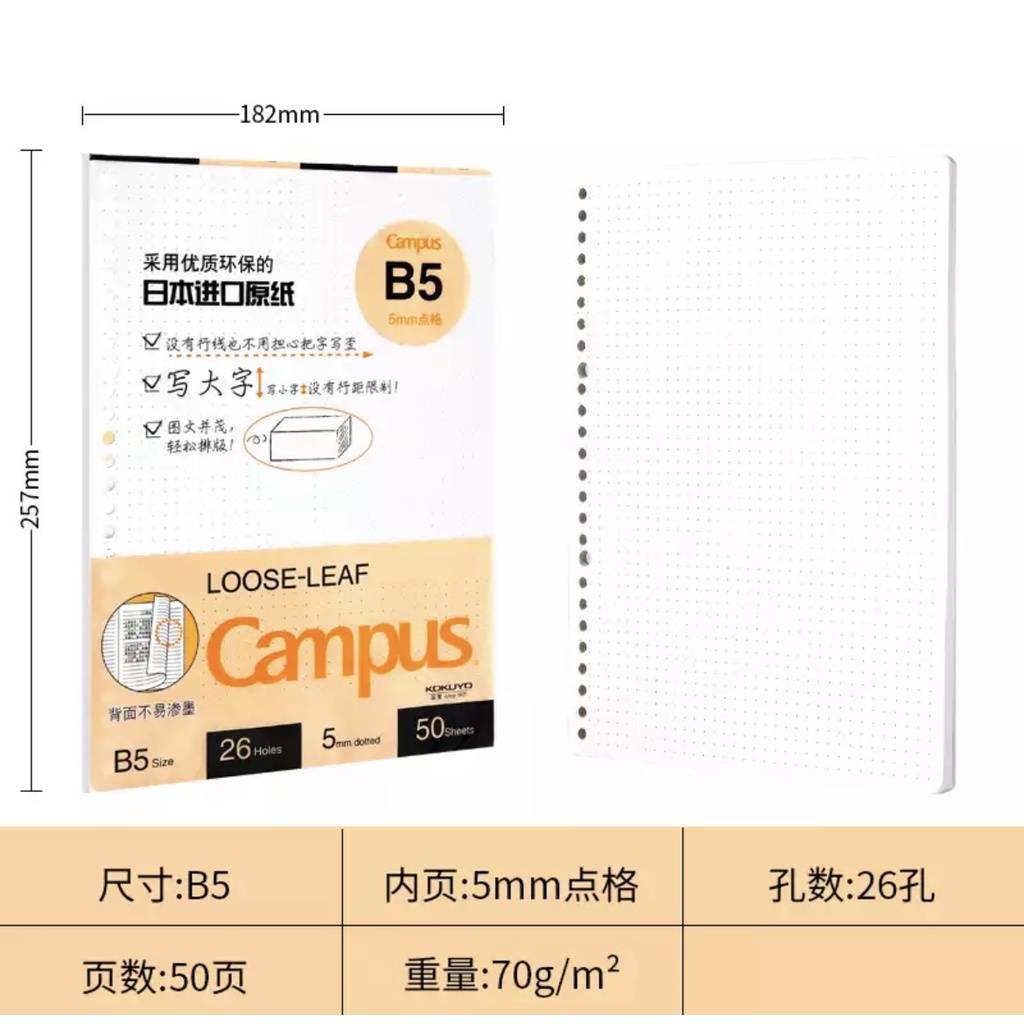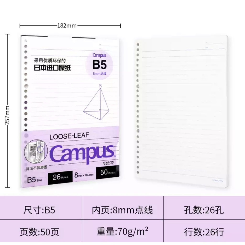 Campus Loose Leaf File Refill A5 B5 Notebook Imported From Japan With Paper Kokuyo