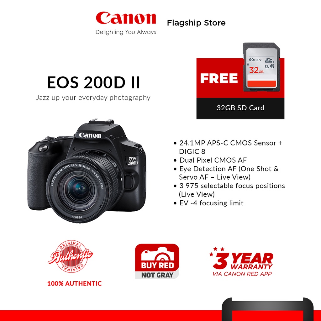 Canon EOS 200D II DSLR Camera with 18-55 IS STM Lens (24MP, 9AF Points, ISO 25600) with Free 32GB SD
