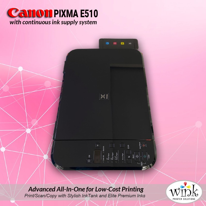 Canon Pixma E510 Printer Scanner Copier or Xerox with CISS Continous Ink and Elite Dye Inks One Set